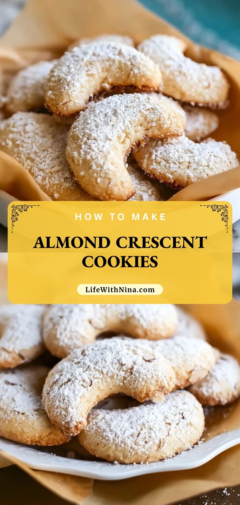 Almond Crescent Cookies are best served with a warm beverage like tea, coffee, or even a glass of milk. Their subtle sweetness makes them a perfect companion to richer desserts or as part of a holiday cookie platter. They also make charming edible gifts, especially when wrapped in parchment and tied with twine.