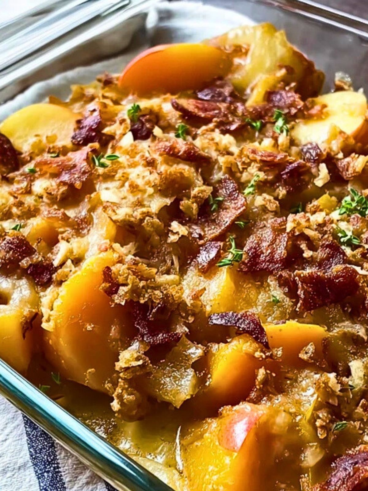 This Apple Butternut Squash Casserole is the perfect blend of savory and sweet, combining roasted butternut squash, tender apples, caramelized onions, and crispy bacon. Topped with crunchy fried onions or panko, it’s a comforting, crowd-pleasing side dish for fall dinners and holiday gatherings.