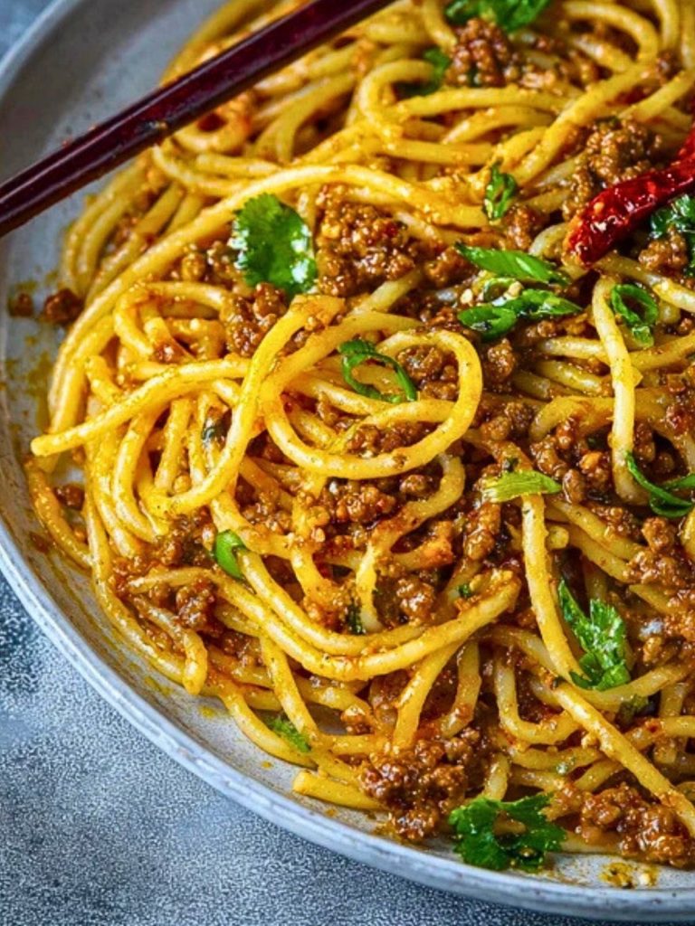 Keywords: ground beef, spicy noodles, weeknight dinner