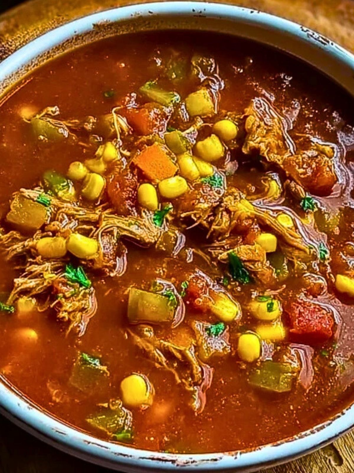 5. Stir in the shredded chicken, pulled pork, corn, and BBQ sauce (if using). Lower heat and simmer for another 30 minutes.