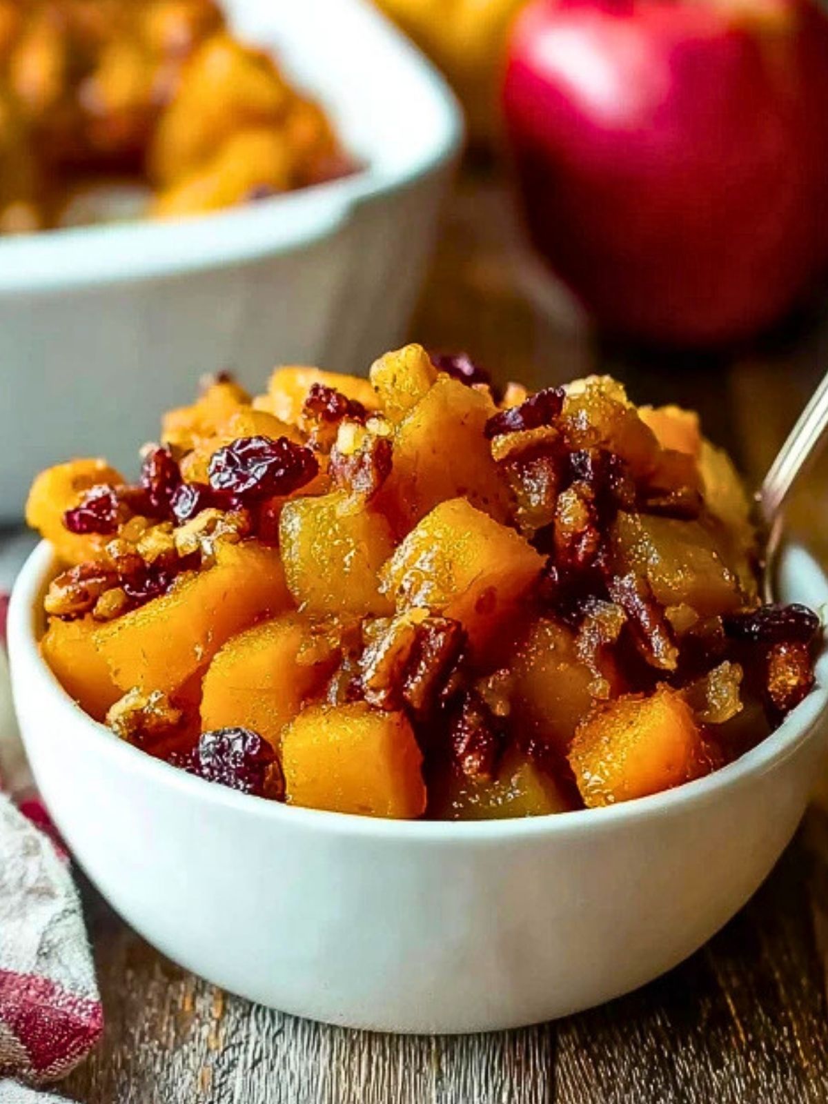A cozy bowl of Autumn Butternut Squash Apple Bake is like wrapping yourself in your favorite blanket on a chilly fall evening. It combines tender chunks of roasted butternut squash and sweet apples with a blend of cinnamon, maple, pecans, and cranberries for a flavor profile that screams comfort food with a healthy twist. It looks rustic, smells like a fall candle, and tastes like a holiday side dish that could steal the show.