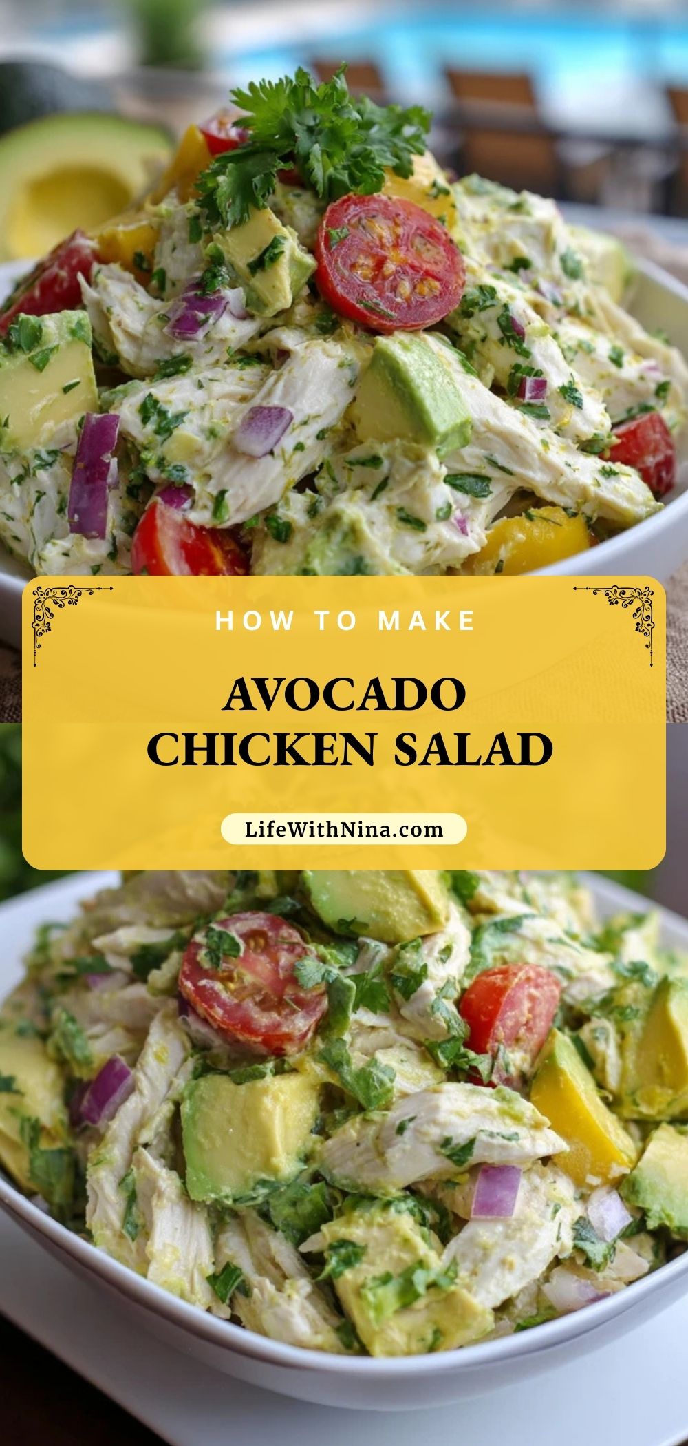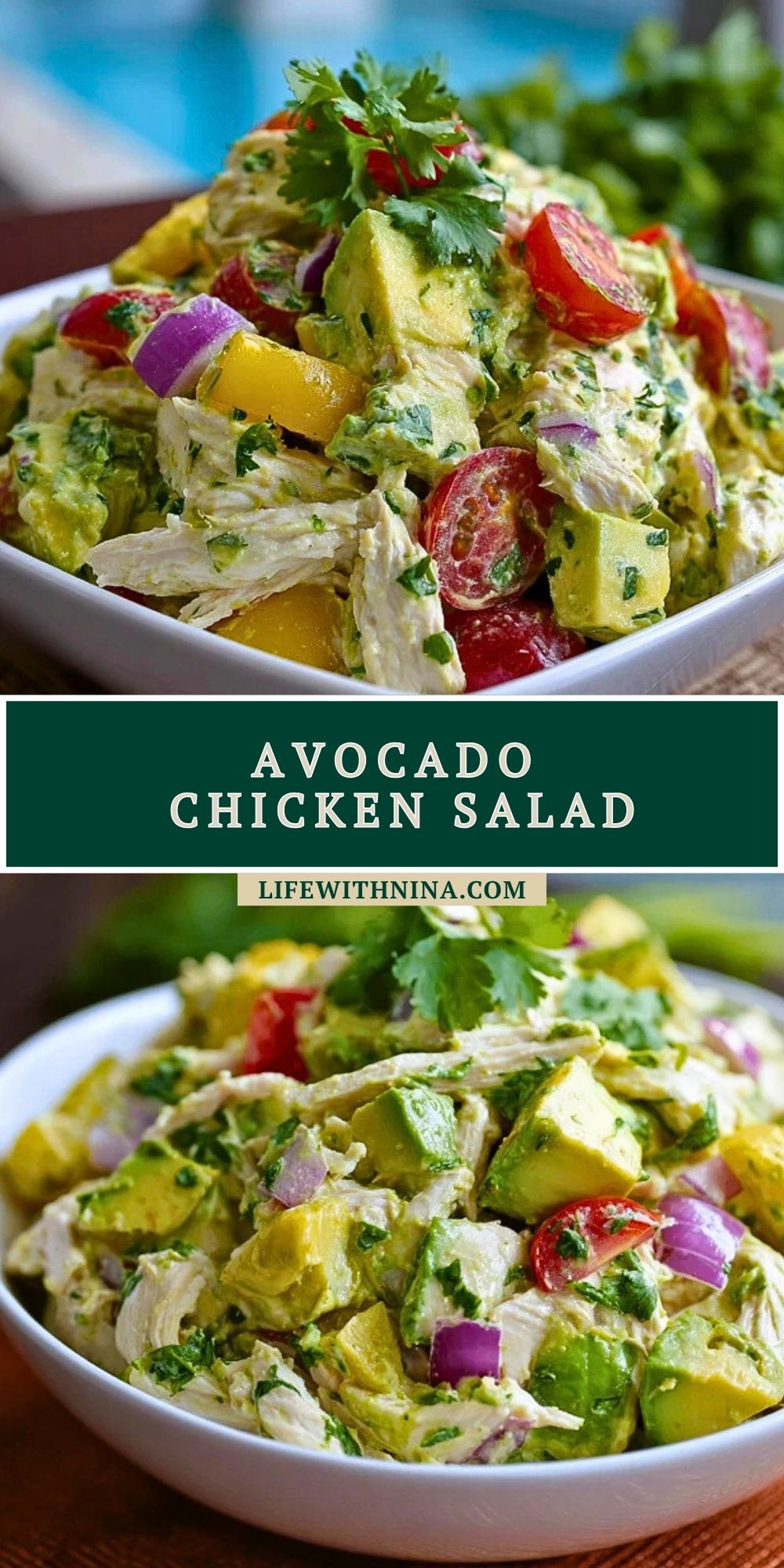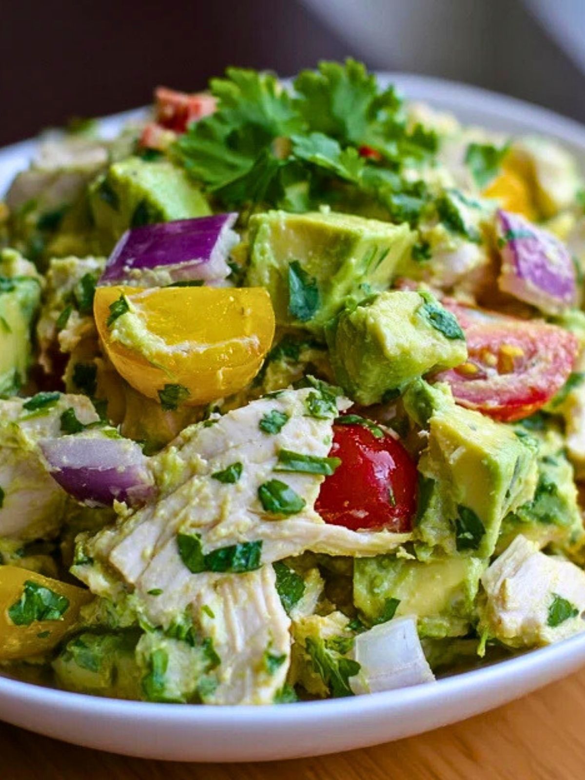 This Avocado Chicken Salad is a creamy, protein-packed dish made without mayo. Fresh avocados bring a luscious texture that pairs perfectly with juicy chicken, crisp onions, and sweet cherry tomatoes. It’s light, nutritious, and great for meal prep, picnics, or a quick lunch!