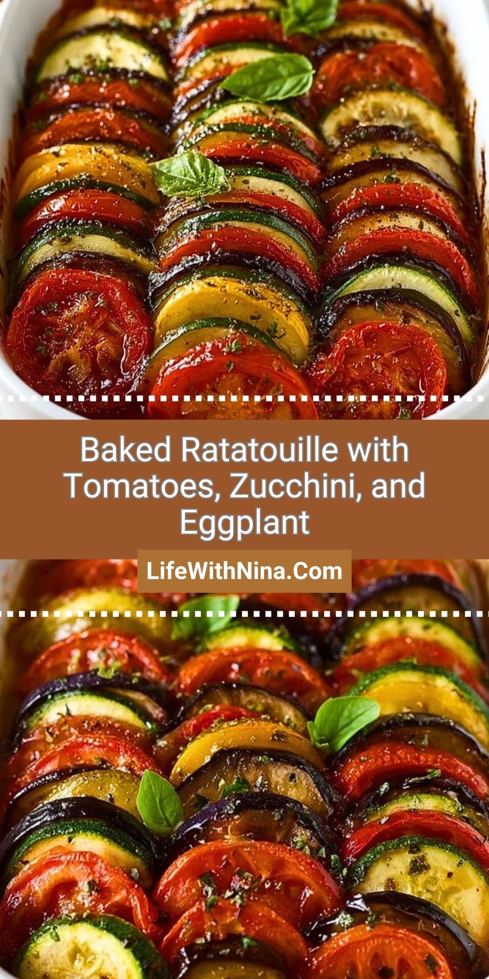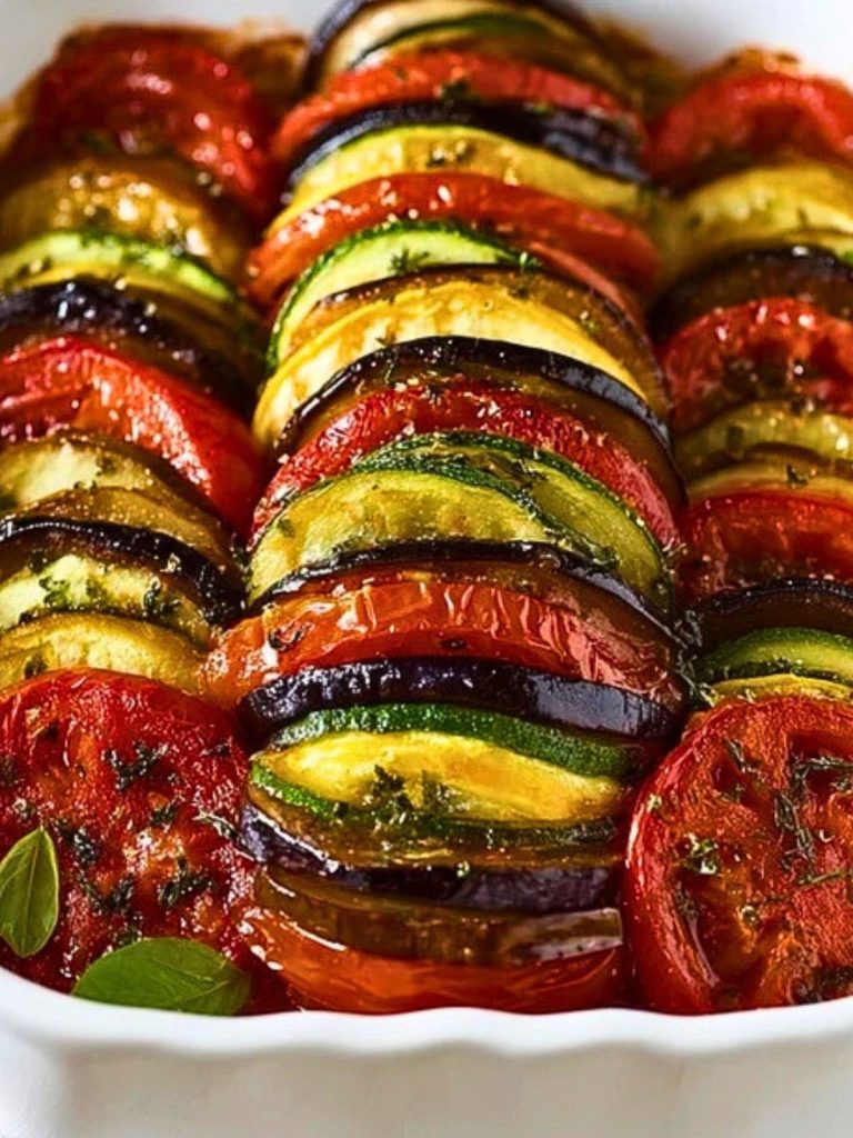 A vibrant, beautifully layered French-inspired dish featuring zucchini, tomatoes, and eggplant baked in garlicky tomato sauce. Naturally vegan, gluten-free, and bursting with garden-fresh flavor. Perfect as a main or side.
