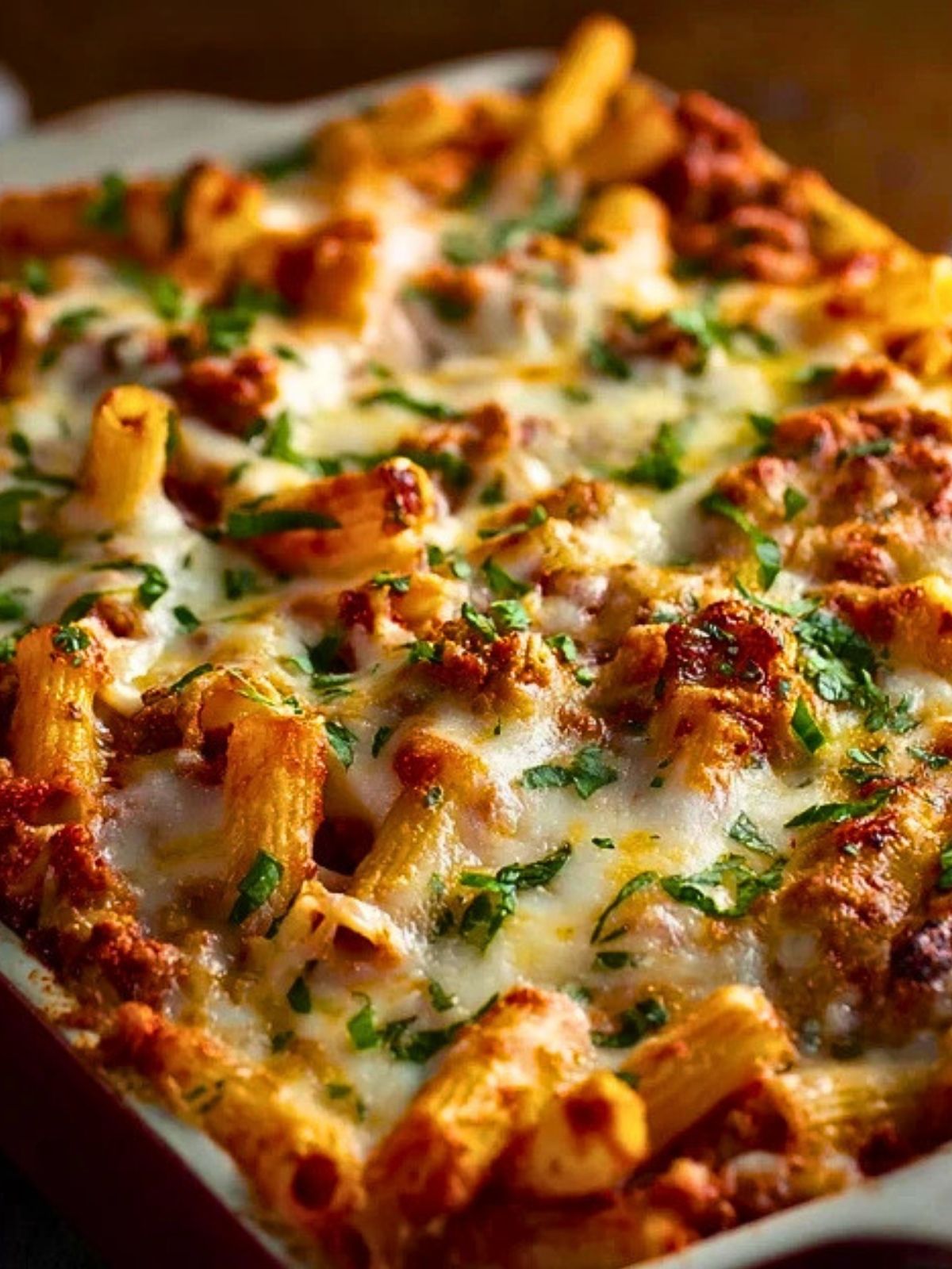 Serve this baked ziti hot, straight from the oven, with a sprinkle of fresh parsley or extra Parmesan on top. It pairs beautifully with a crisp green salad or garlic bread for a complete and satisfying meal.