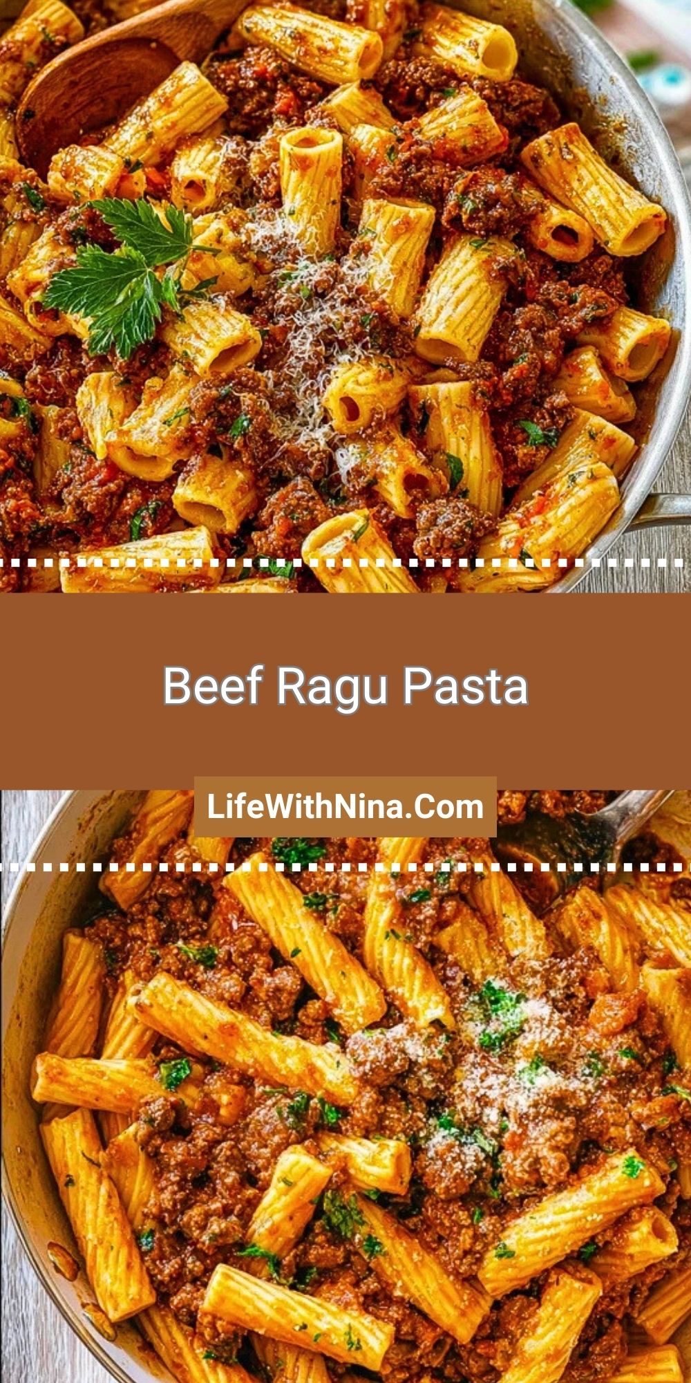 Beef Ragu Pasta stores incredibly well. Let leftovers cool completely, then store them in an airtight container in the refrigerator for up to 4 days. Reheat gently on the stovetop or in the microwave, adding a splash of water or broth if needed to loosen the sauce. You can also freeze the ragu sauce separately for up to 3 months, then boil fresh pasta when you’re ready to enjoy it again.