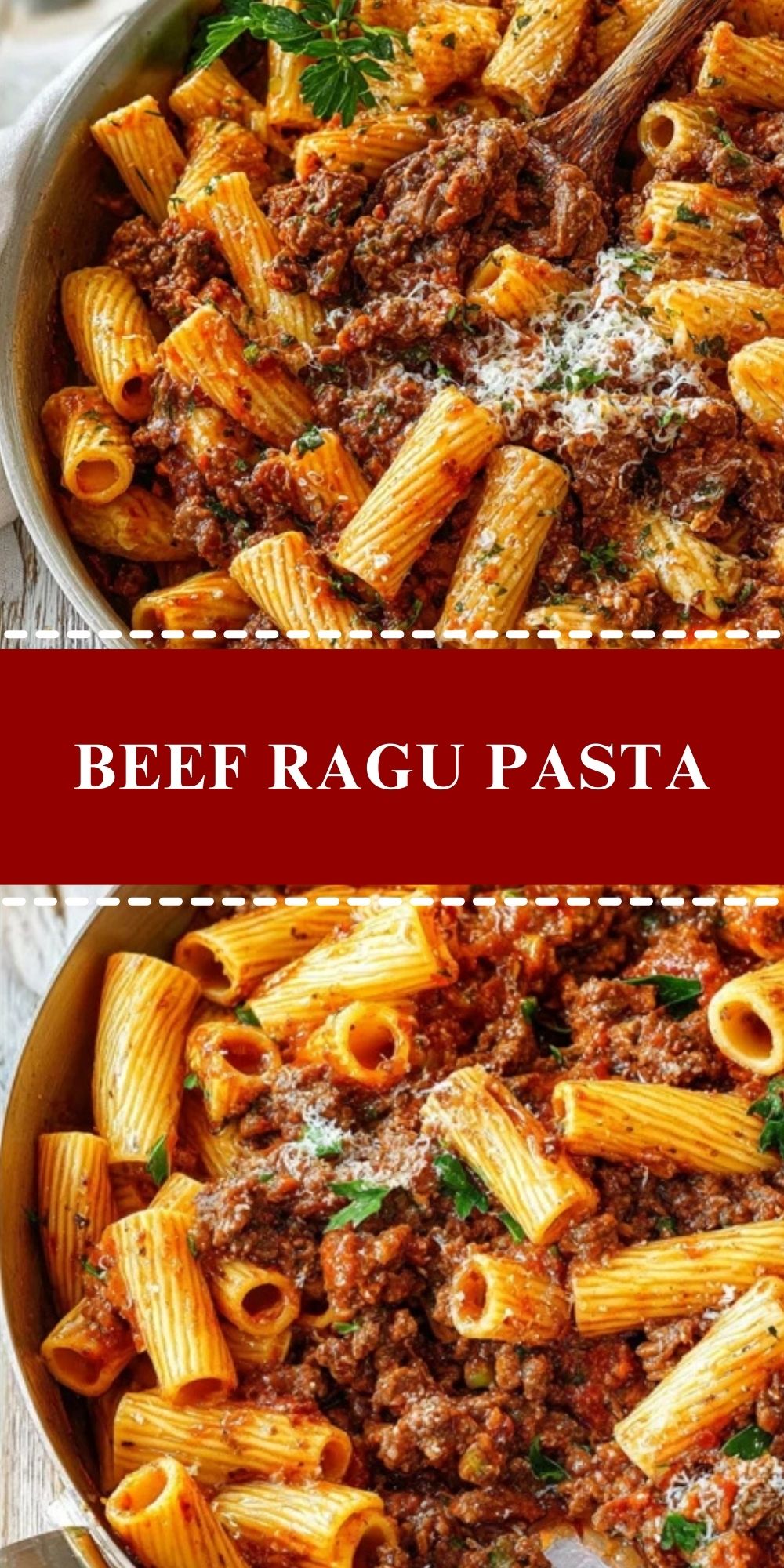 This hearty Beef Ragu Pasta is the ultimate comfort food. Featuring a rich, slow-simmered tomato and beef sauce tossed with perfectly cooked rigatoni, it’s finished with a touch of Parmesan for an indulgent, satisfying dinner. Ideal for busy weeknights or a cozy weekend meal.