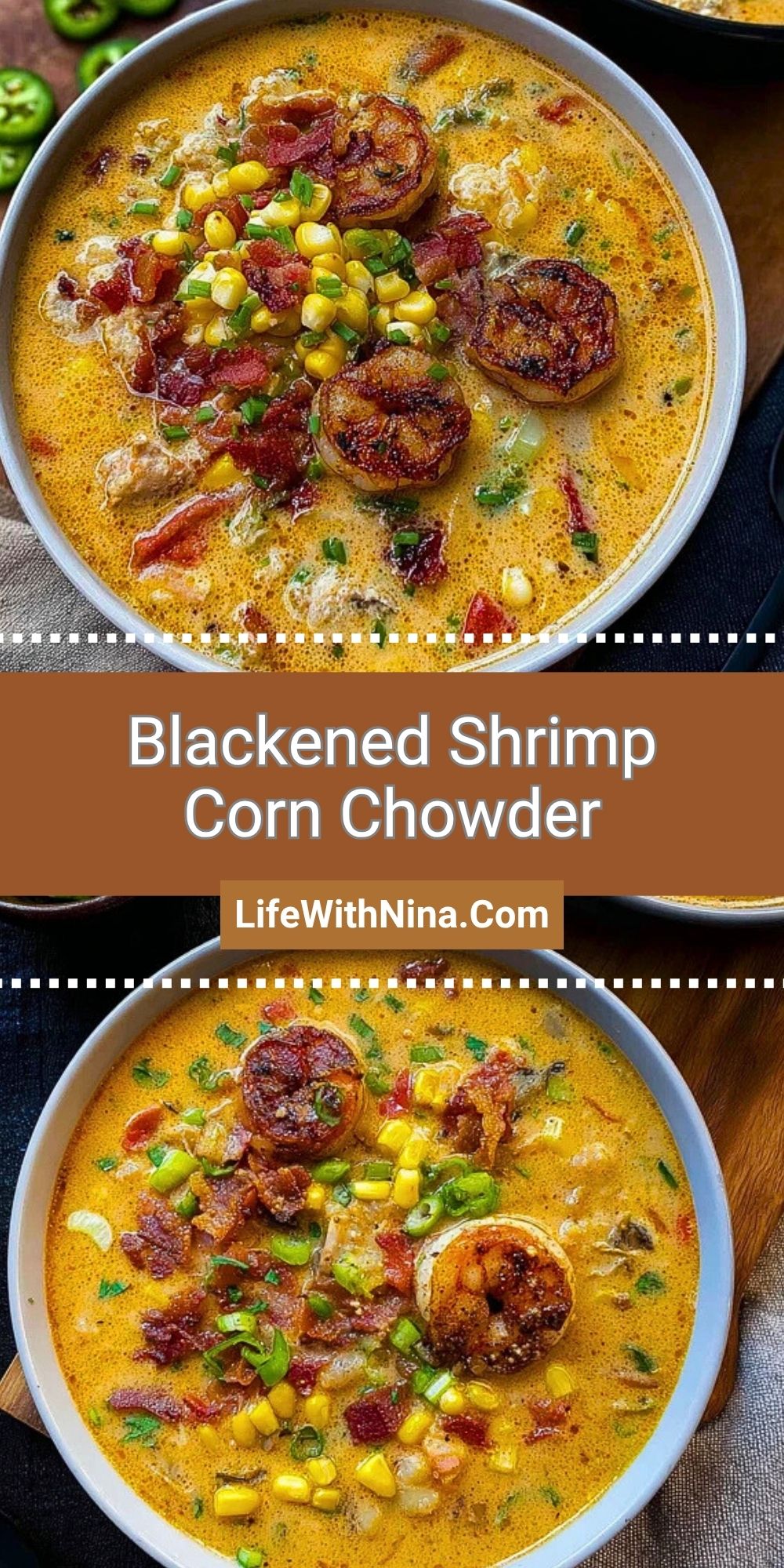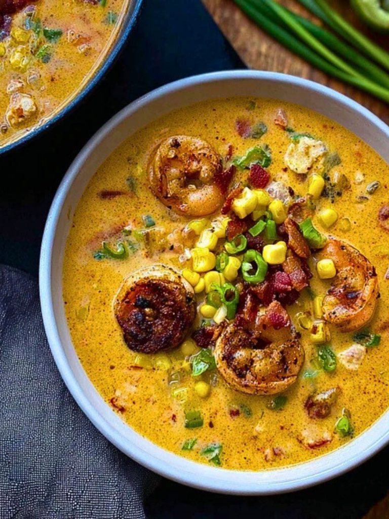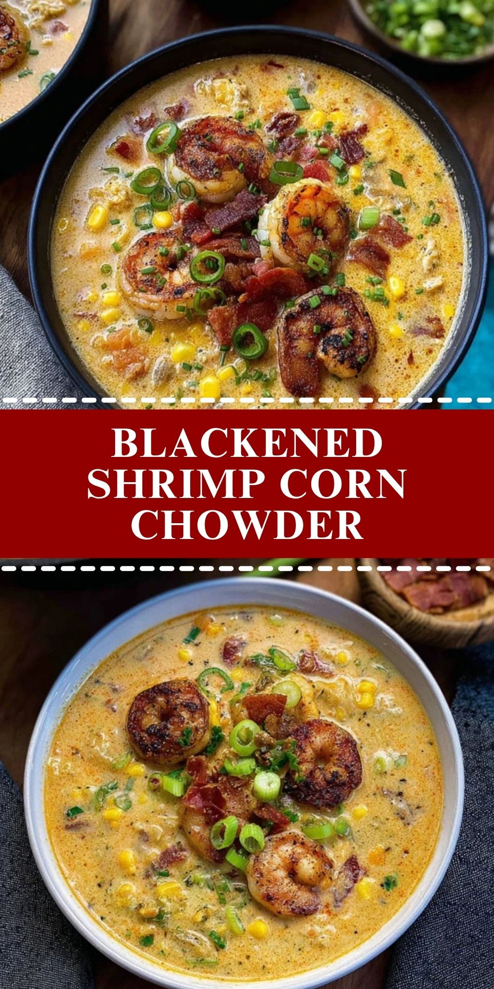 This Blackened Shrimp Corn Chowder is the perfect blend of smoky heat and creamy comfort. Imagine juicy, spiced shrimp sizzling to perfection, nestled in a rich chowder packed with sweet corn, crispy bacon, and tender potatoes. It’s warm, satisfying, and full of bold flavor in every spoonful—the kind of soup that makes you close your eyes and savor the bite.