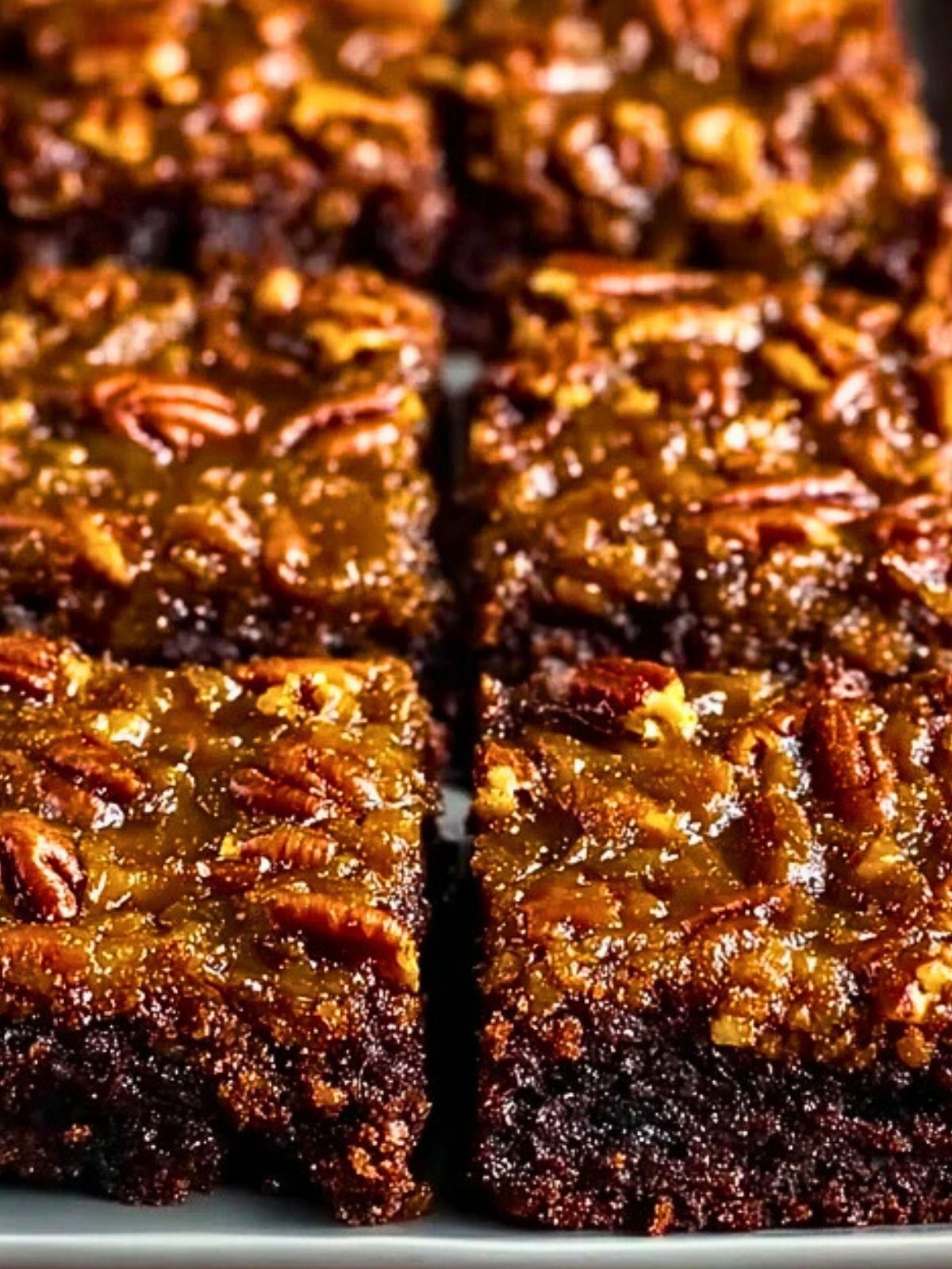 Every bite of these bars hits with layered textures: the slight crunch of buttery pecans, the soft chew of a brownie center, and the sticky, sweet topping that soaks just enough into the chocolate base without turning it soggy. They’re ideal for Thanksgiving dessert tables, holiday potlucks, or just as a “treat yourself” moment with your afternoon coffee.