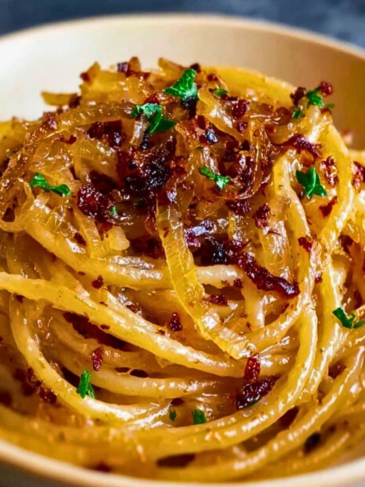 Spaghetti or Linguine: The pasta acts as a silky base that embraces the onion’s flavor beautifully.