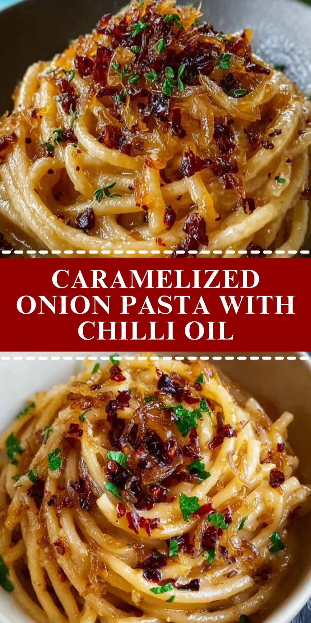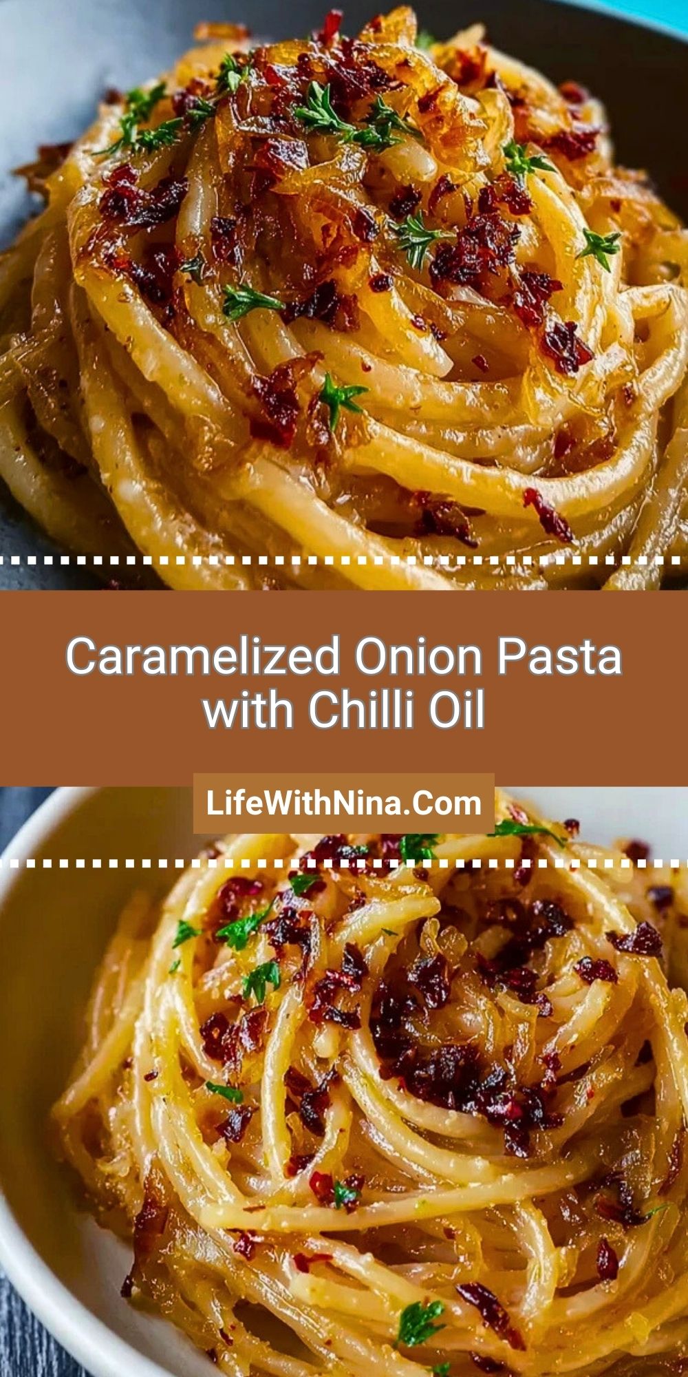 Keywords: caramelized onion pasta, chili oil pasta, easy pasta dinner