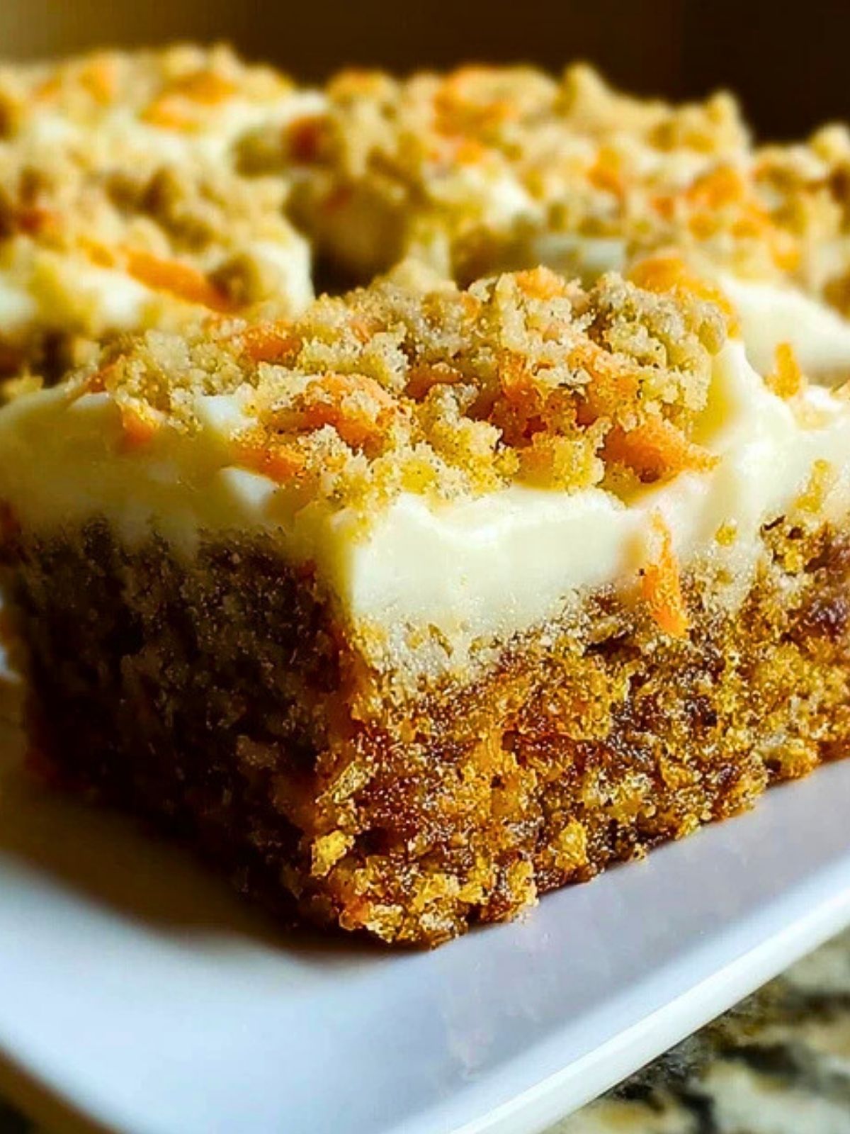 Unlike traditional carrot cake, these bars are easier to slice, serve, and store—ideal for parties, lunchboxes, or a grab-and-go treat. The cream cheese topping adds that tangy richness we crave, while the crumble and grated carrots offer beautiful texture and flavor in each bite.