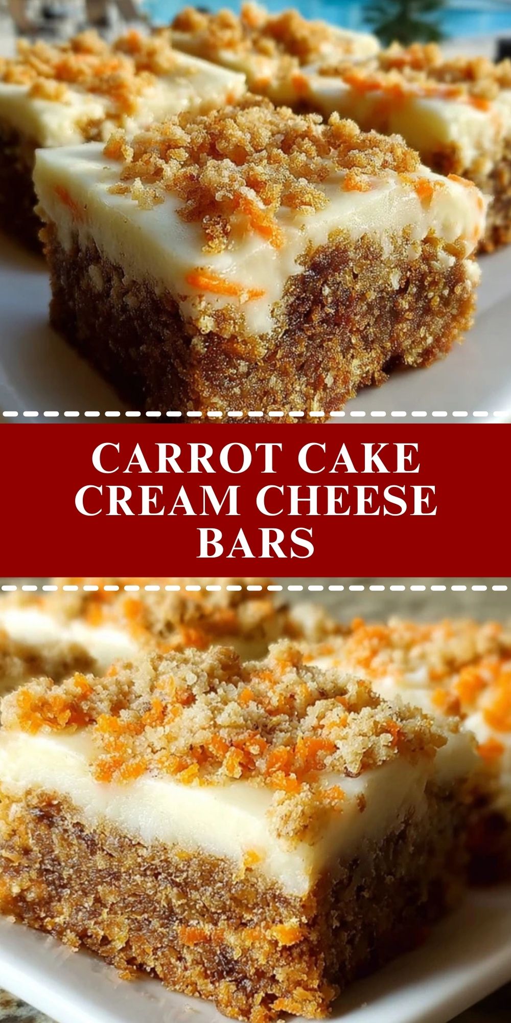 Carrot Cake Cream Cheese Bars are best served slightly chilled or at room temperature. The cream cheese layer sets beautifully when cold, making it easier to slice clean squares.