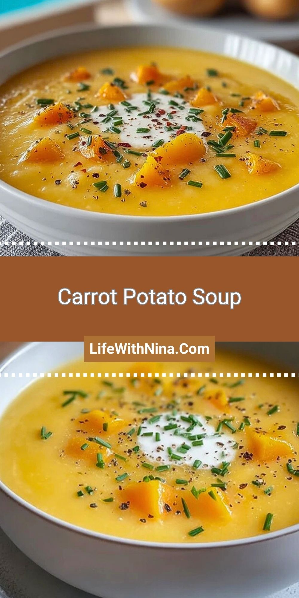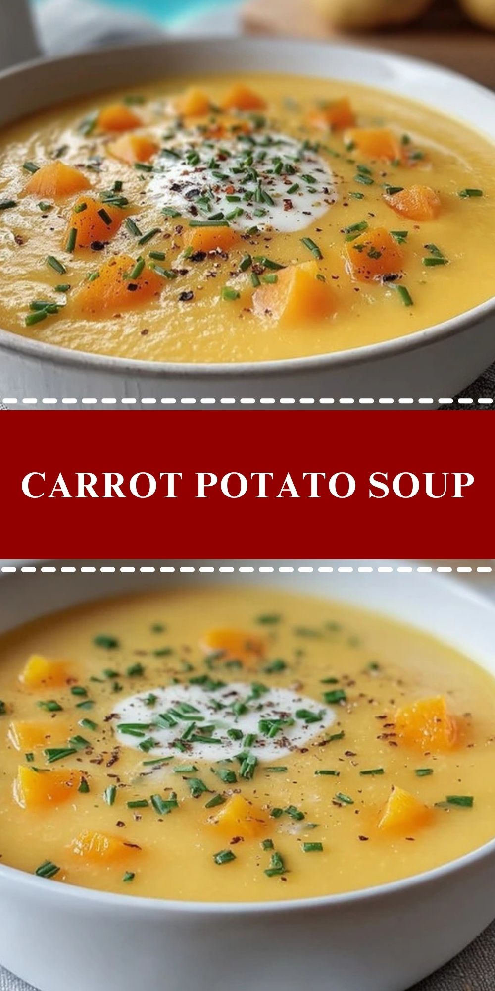 Carrot Potato Soup is best served piping hot, garnished with fresh herbs and a swirl of sour cream or Greek yogurt for extra richness. It pairs beautifully with crusty bread, garlic toast, or even a grilled cheese sandwich for a complete, cozy meal.