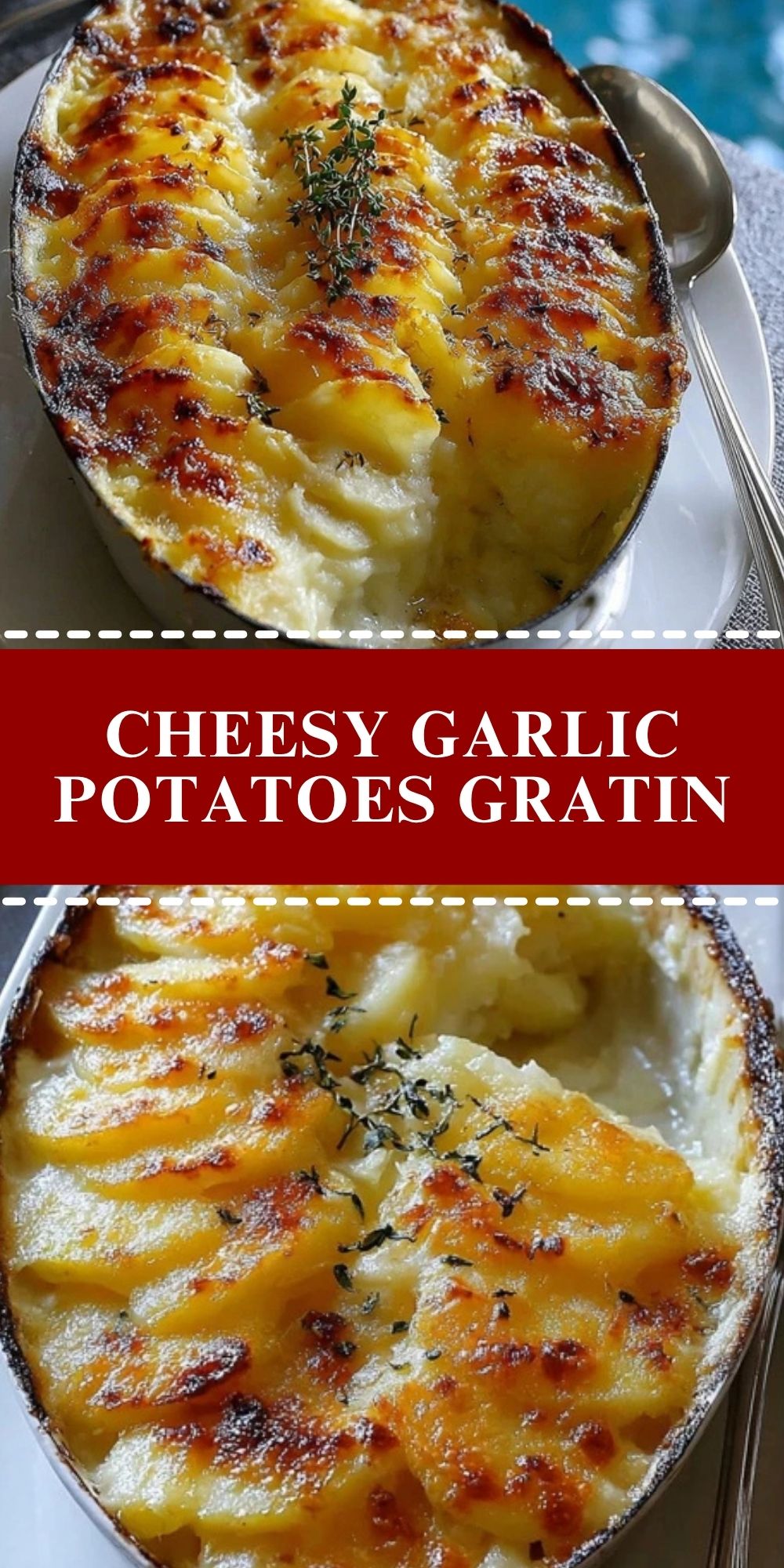 This Cheesy Garlic Potatoes Gratin is a comforting, creamy, and irresistibly cheesy side dish. Thinly sliced potatoes are layered with a rich garlic-infused cream sauce and topped with golden bubbly cheese. Perfect for holidays or cozy dinners!