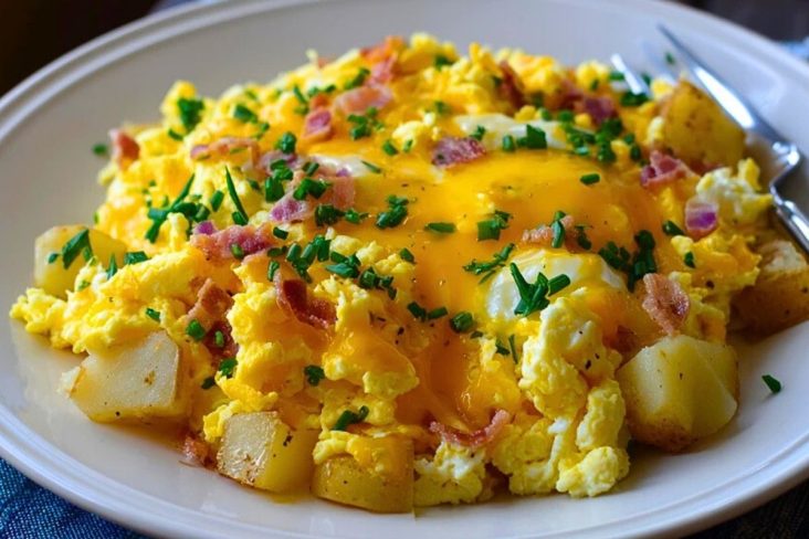 This Cheesy Potato Egg Scramble is your go-to one-pan breakfast wonder—perfect for quick breakfast ideas, easy dinners, or hearty brunches. With crispy golden potatoes, fluffy eggs, sharp cheddar, and savory bacon or ham, it’s a protein-packed meal that satisfies every time. Whether you’re serving it as a healthy snack, part of your weekend breakfast ideas, or looking for easy recipe food ideas to keep on repeat, this dish checks all the boxes.