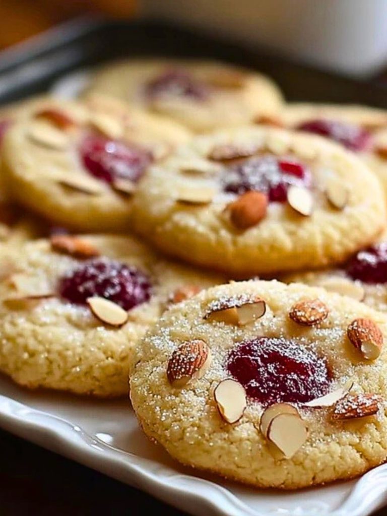 These Cherry Almond Amish Sugar Cookies are tender, buttery, and irresistibly soft, topped with toasted almond slivers and filled with a sweet cherry center. A nostalgic cookie with a flavorful twist, they’re perfect for holidays, tea time, or gifting.