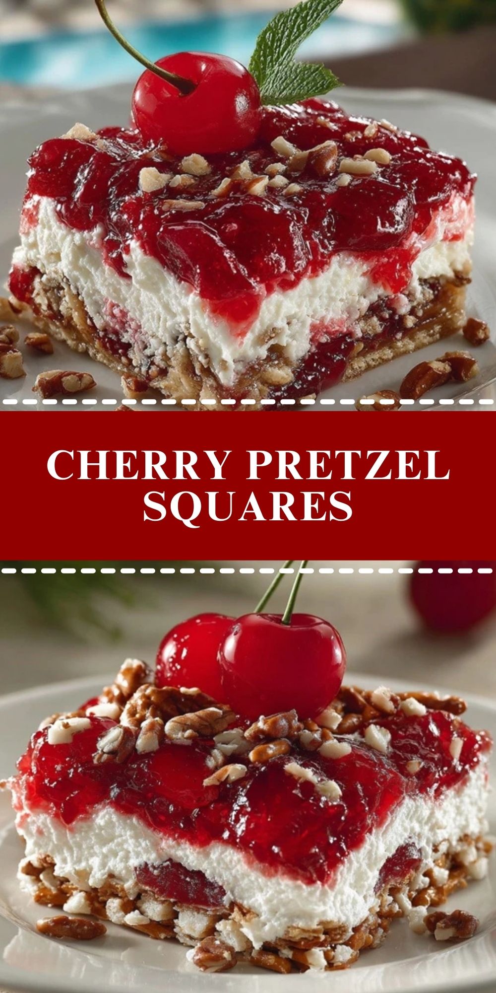 These Cherry Pretzel Squares are the perfect no-bake dessert with a crunchy pretzel crust, creamy cheesecake-style center, and a tangy cherry topping. A favorite for potlucks, summer BBQs, and holidays, they deliver the ultimate balance of salty, sweet, and creamy in every bite.
