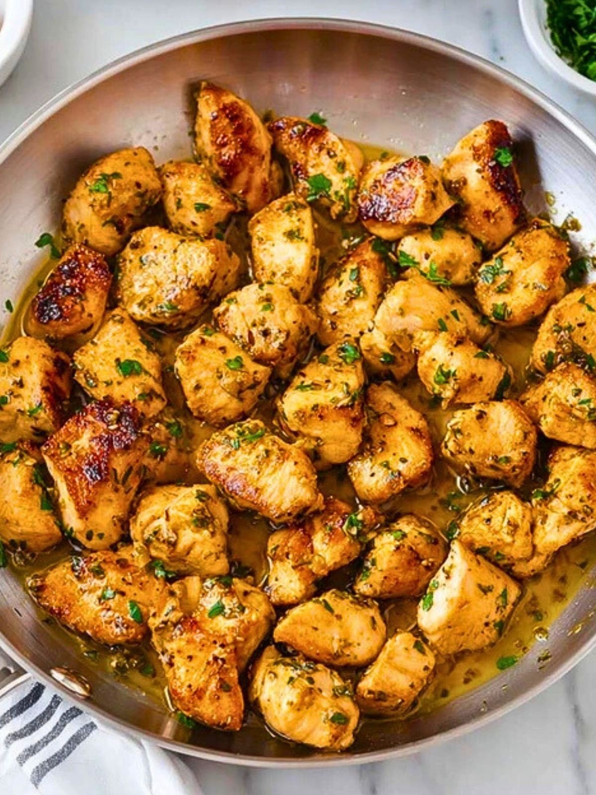 Golden on the outside, juicy on the inside, and bathed in a rich garlic butter sauce, these Chicken Bites in Garlic Butter are the perfect quick dinner or party dish. Each bite delivers a savory blend of herbs, seared chicken, and buttery garlic goodness that tastes like comfort and elegance all in one pan.