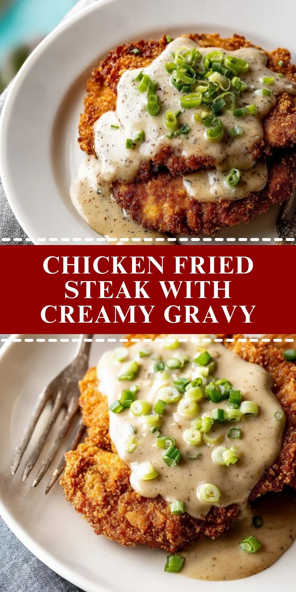 Plate the fried steaks and spoon a generous amount of creamy gravy over the top. Sprinkle with green onions if using. Serve with mashed potatoes, collard greens, or a flaky biscuit on the side.