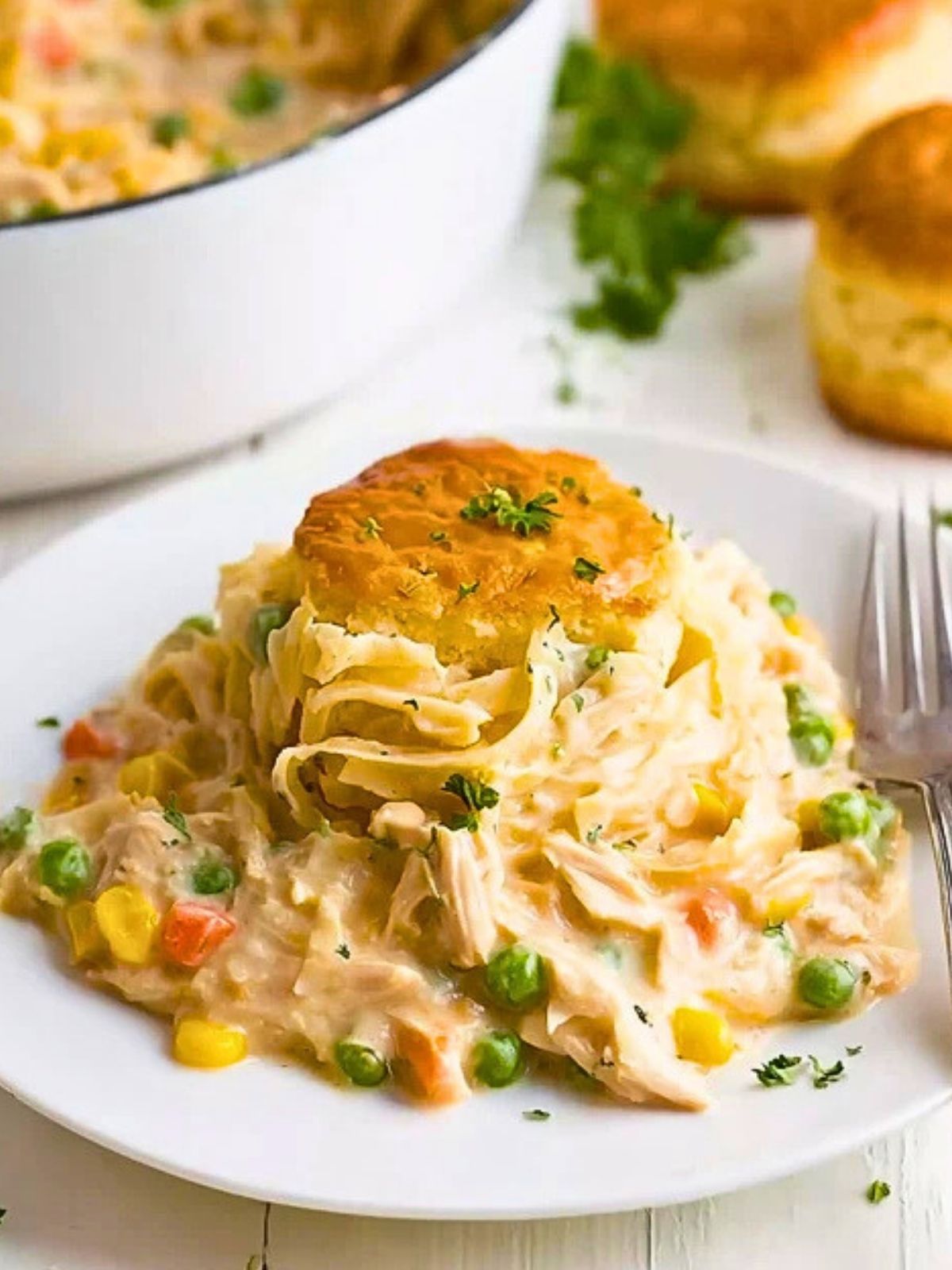 This casserole is best served warm, right out of the oven. The biscuits are golden and crisp on top, while the filling underneath is rich and creamy. It’s a complete meal on its own, but you can pair it with a light side salad or some roasted vegetables for balance.