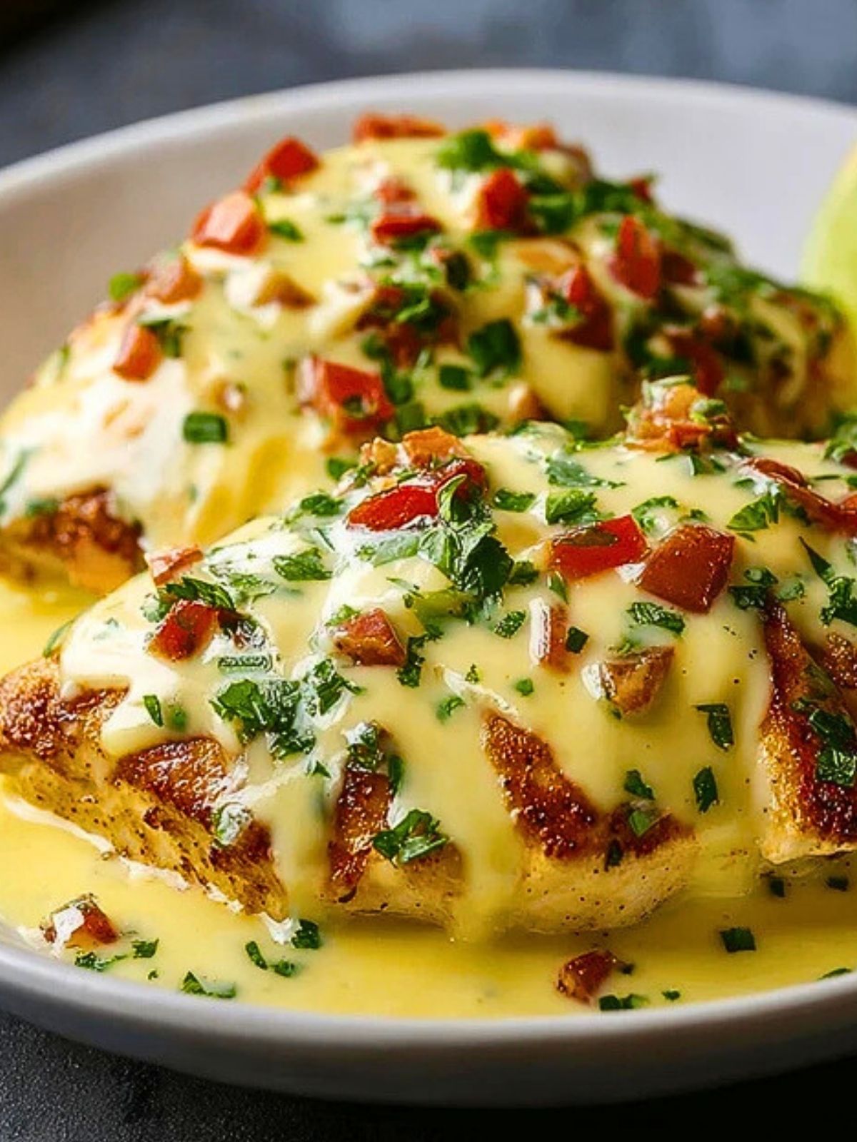 This recipe is all about texture and flavor. The chicken is pan-seared until golden and juicy, while the cheese sauce—made from melty, luscious cheeses—blankets everything in velvety richness. Add-ins like sautéed garlic, tomatoes, or a hint of spice can make it your own, but the base is irresistibly simple. Serve it with a side of roasted veggies, pasta, or warm bread to soak up every bit of the sauce.