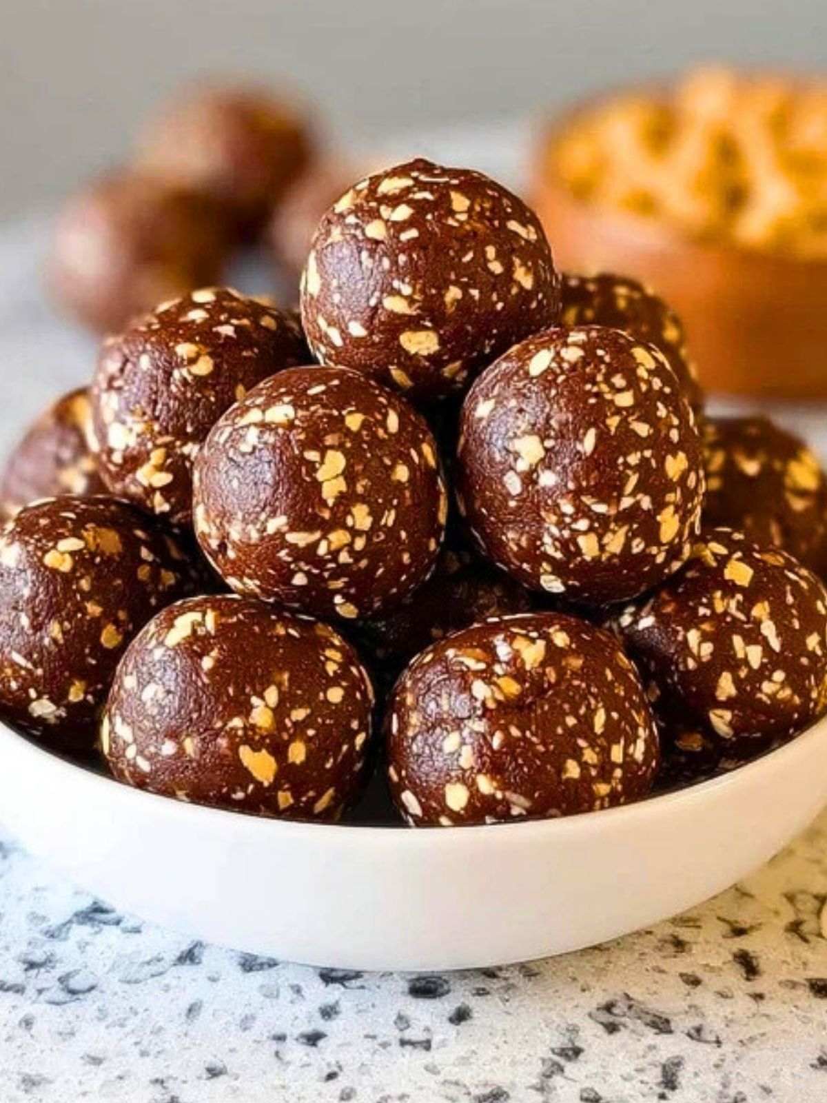 Keywords: chocolate energy balls, peanut butter snack, healthy bites