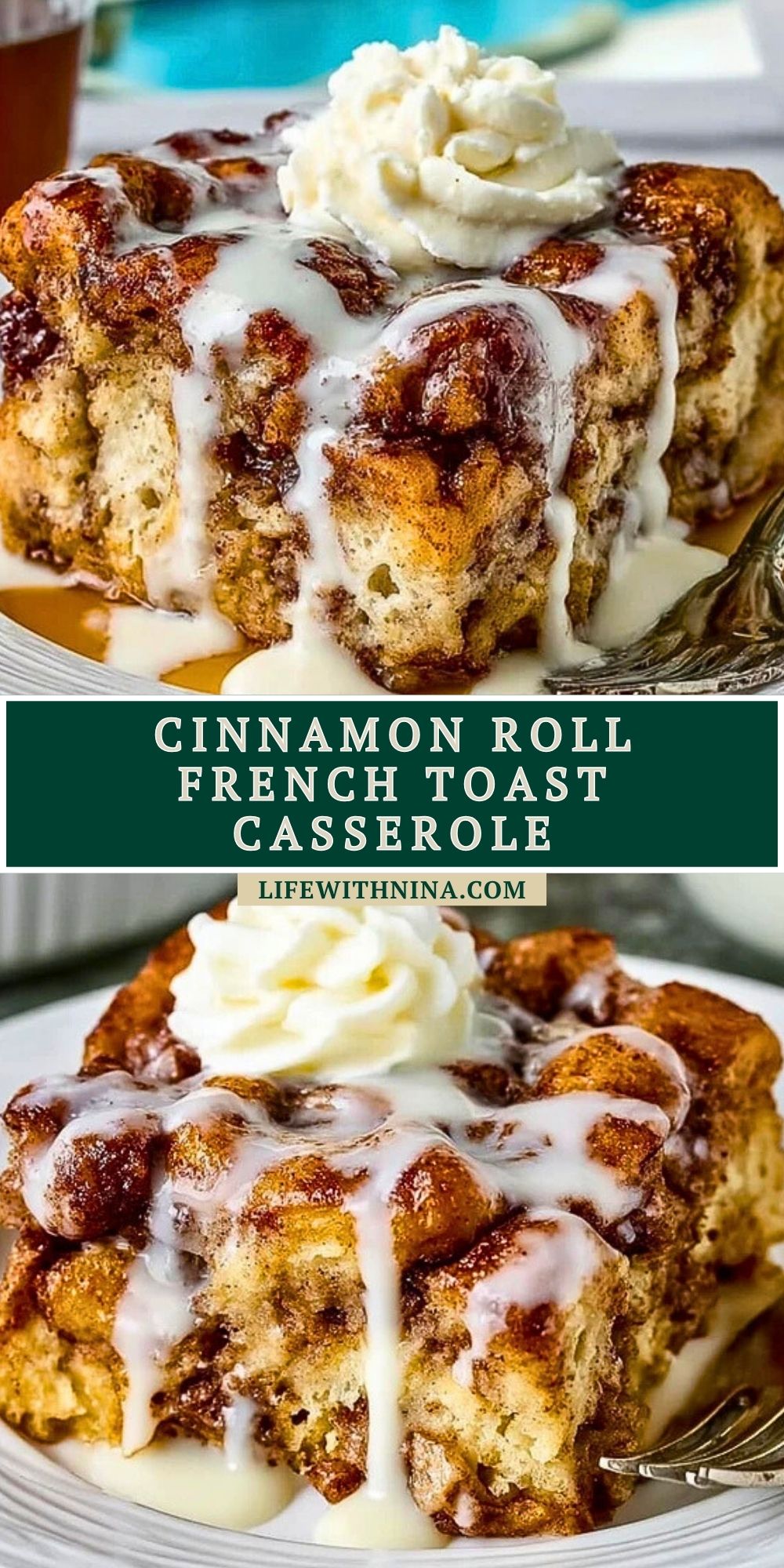 This Cinnamon Roll French Toast Casserole is a warm, gooey, cinnamon-swirled bake perfect for cozy mornings or holiday brunch. It’s a quick-prep dish made with refrigerated cinnamon rolls, soaked in a creamy vanilla custard, and finished with a sweet glaze. Make-ahead friendly and family-approved!