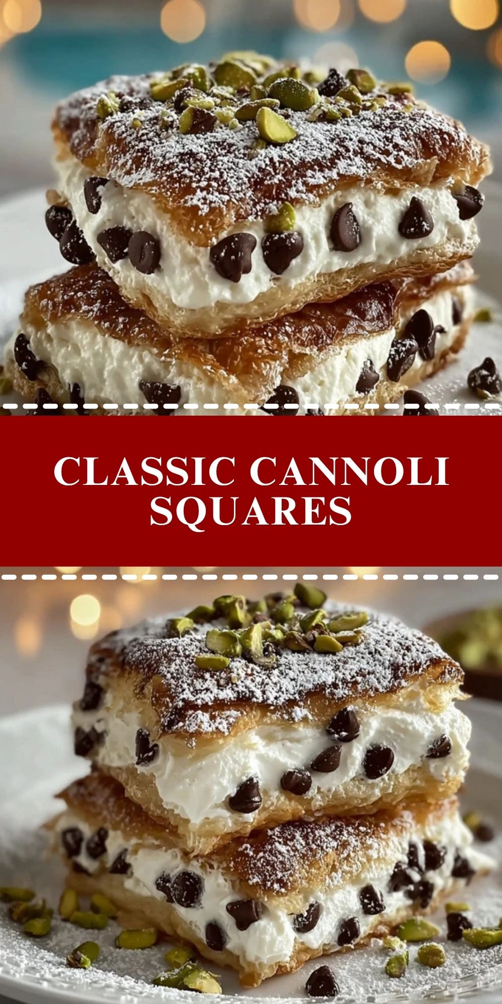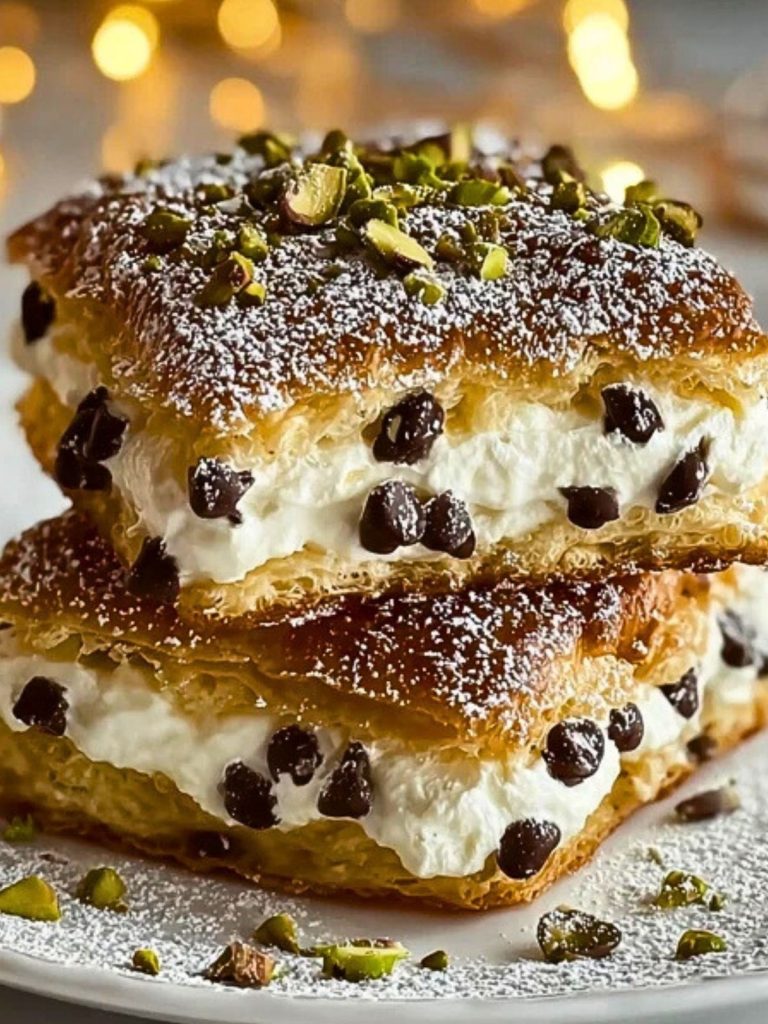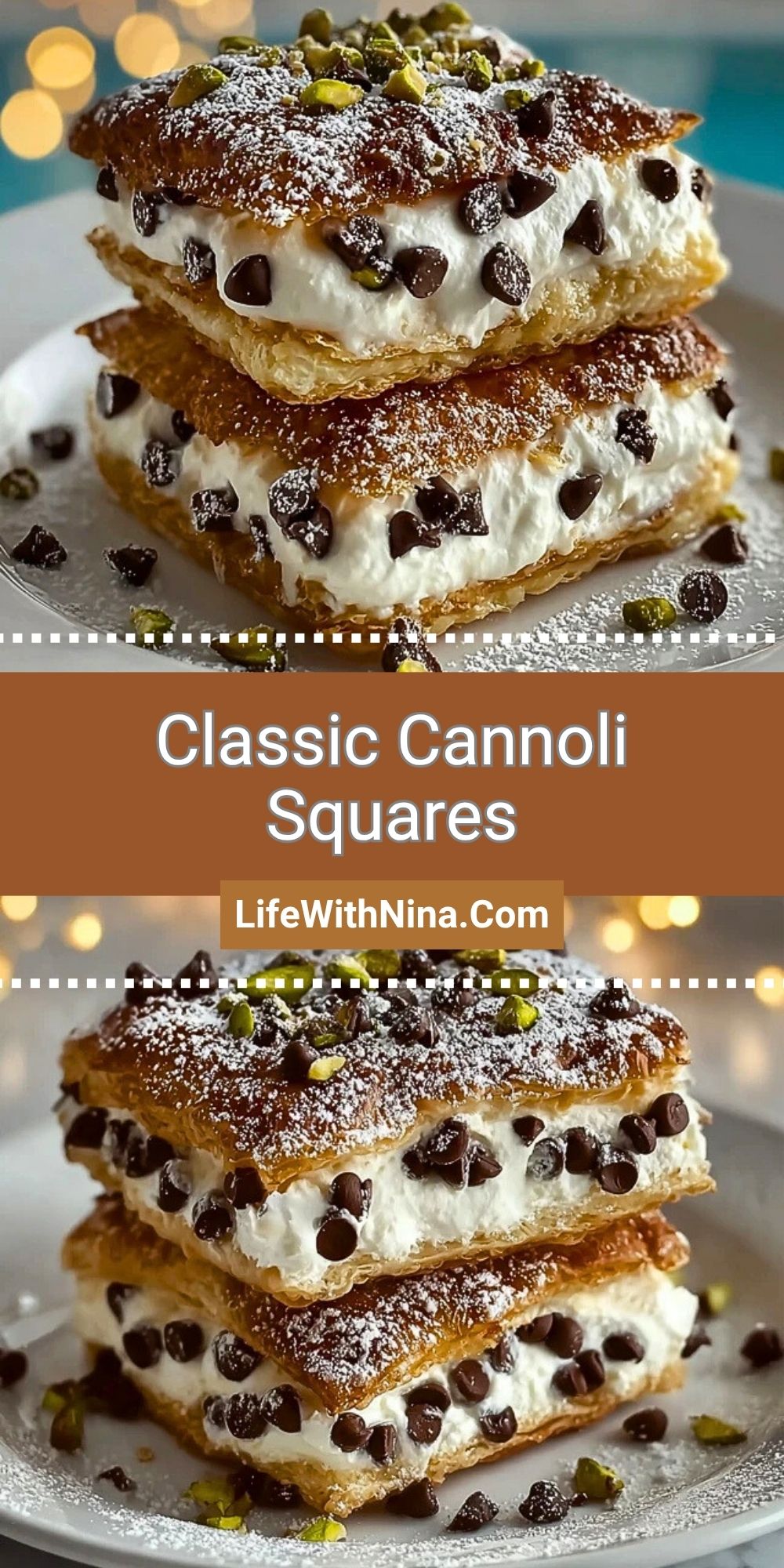 Classic Cannoli Squares are a fun, elegant twist on the traditional Italian cannoli. These delightful treats feature layers of golden puff pastry filled with a creamy ricotta mixture, chocolate chips, and crushed pistachios. They’re perfect for parties, holidays, or whenever you’re craving something sweet and impressive.