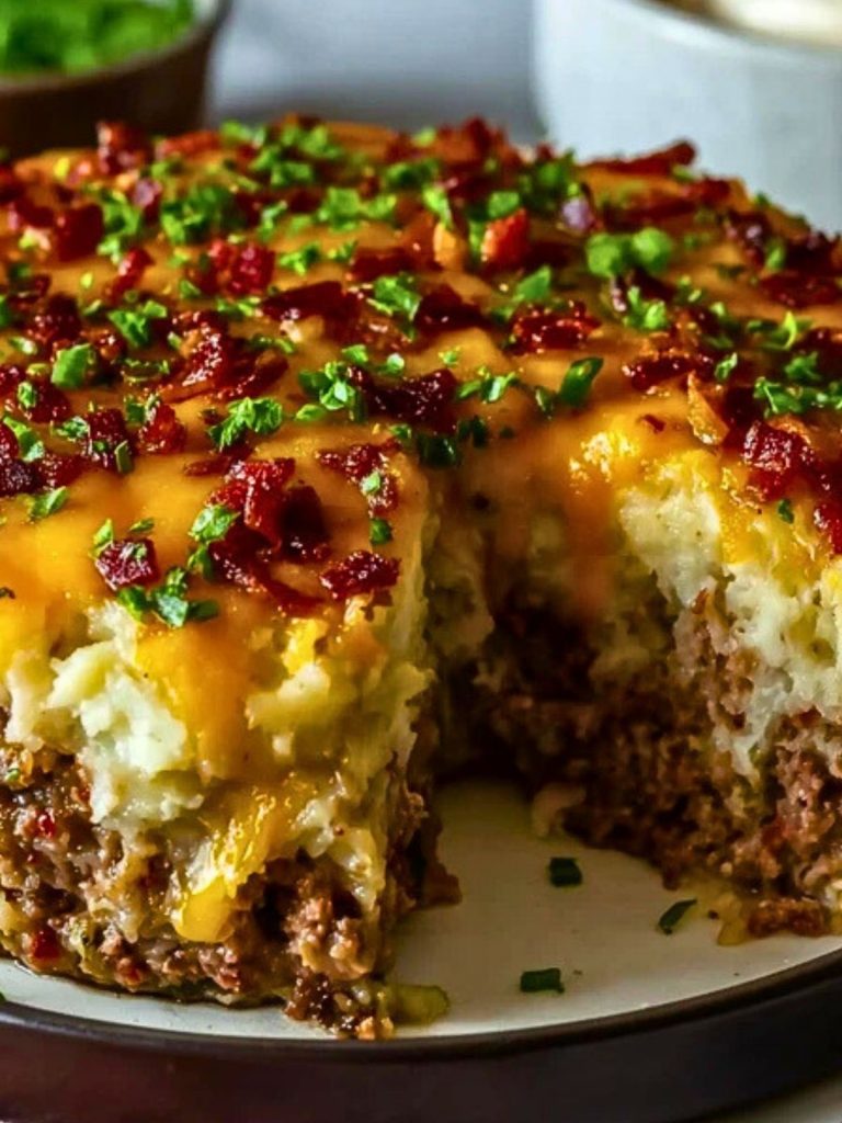 A cozy, all-in-one comfort food classic. This loaded potato meatloaf layers savory, juicy beef with creamy mashed potatoes, melted cheddar, crispy bacon, and fresh chives—an indulgent twist on two favorites that’s perfect for weeknight dinners or holiday tables.