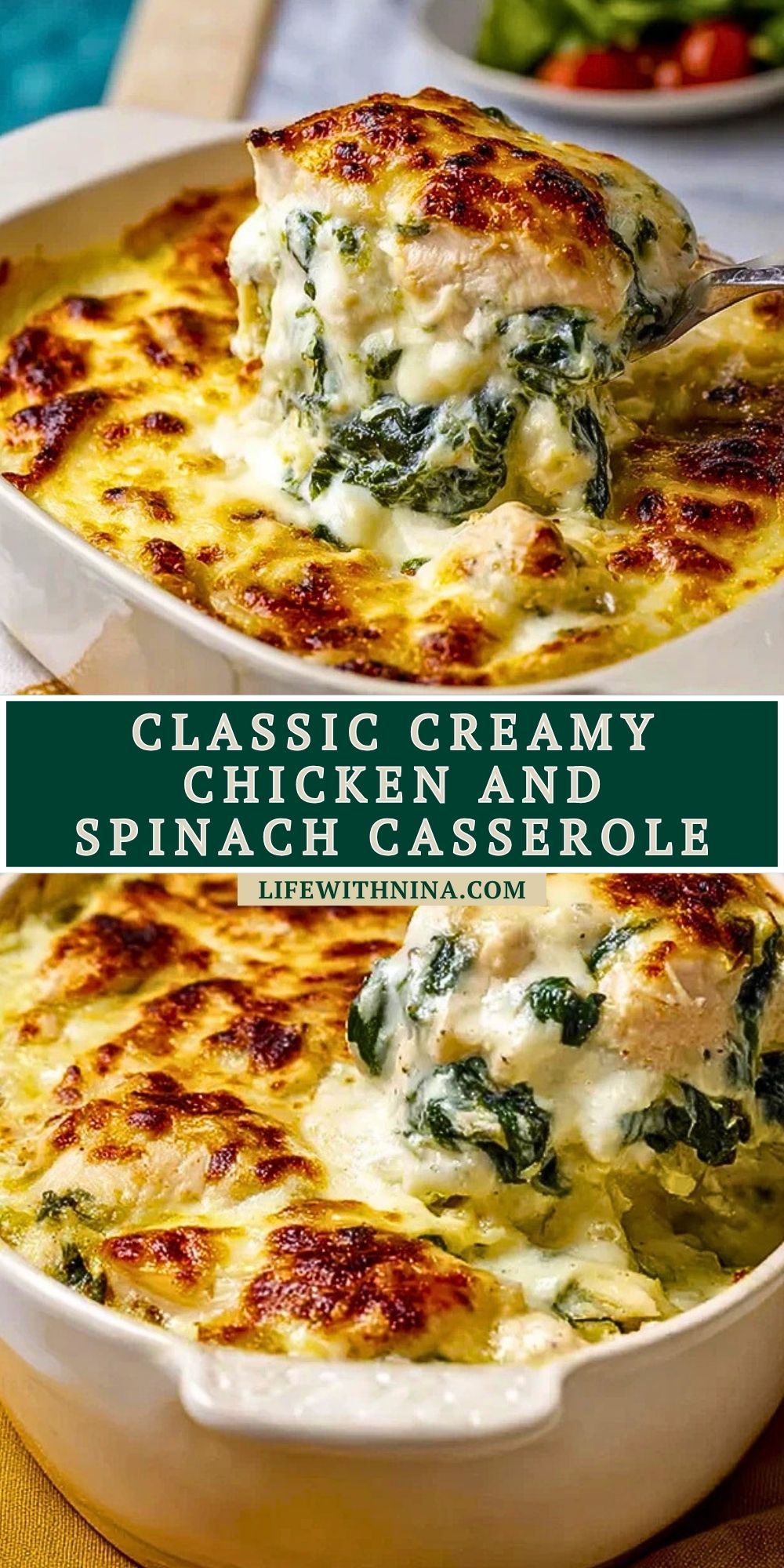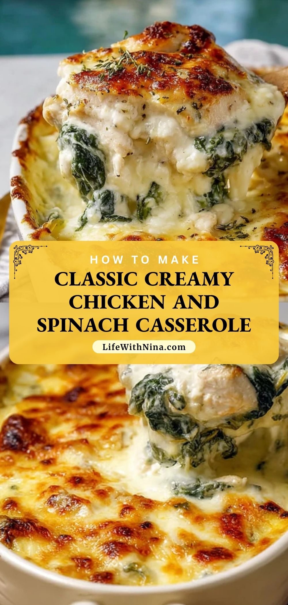 Keywords: classic creamy chicken and spinach casserole, easy dinner, chicken casserole, creamy chicken bake, cheesy casserole, family dinner ideas, comfort food, easy recipe