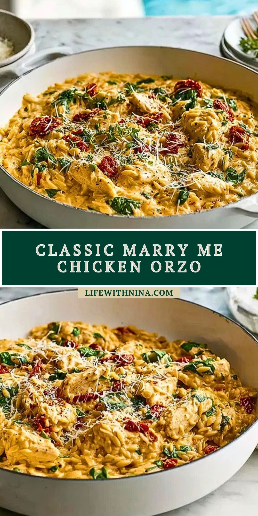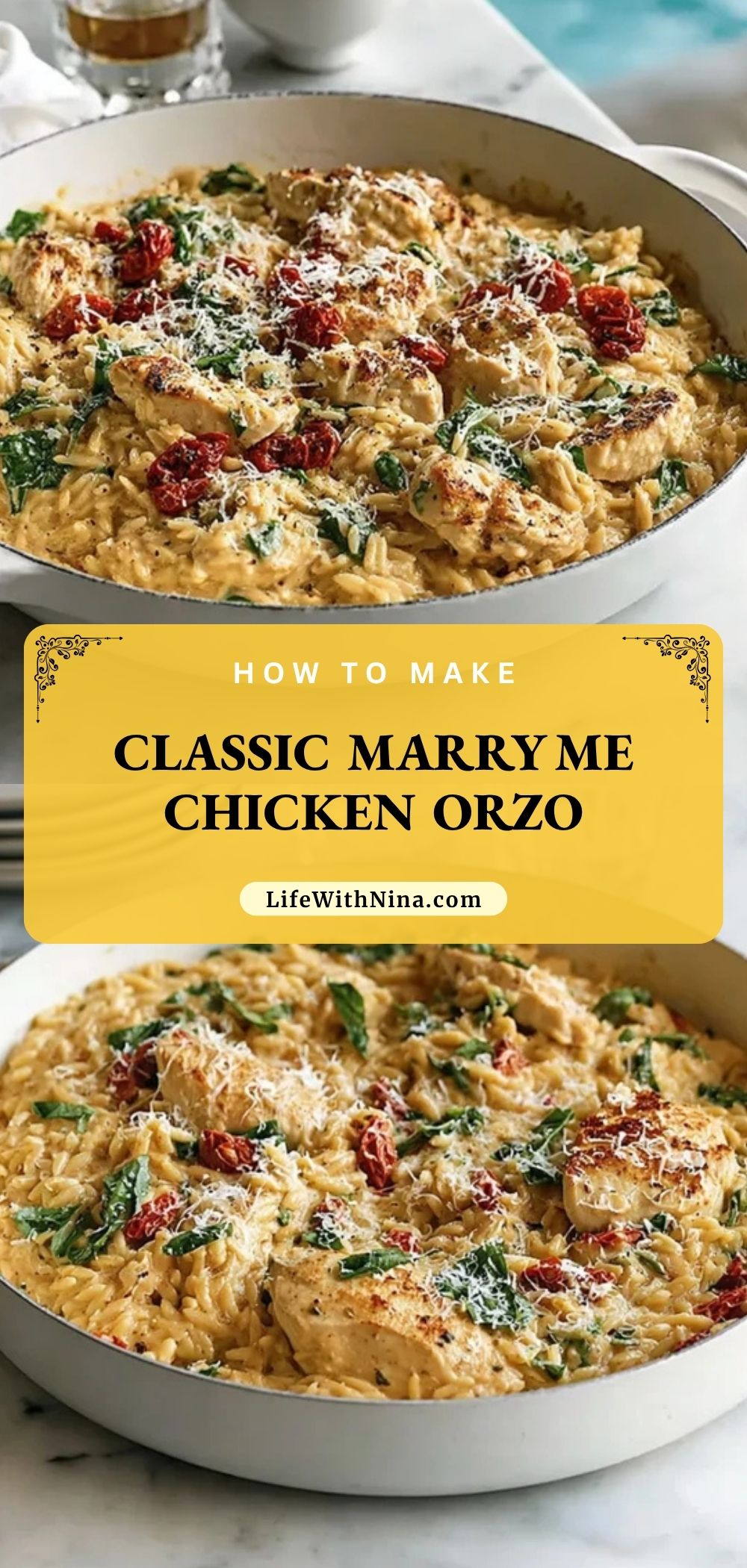 Keywords: classic marry me chicken orzo, easy dinner, one skillet dinner, chicken orzo recipe, creamy chicken orzo, dinner ideas, easy recipe, food ideas
