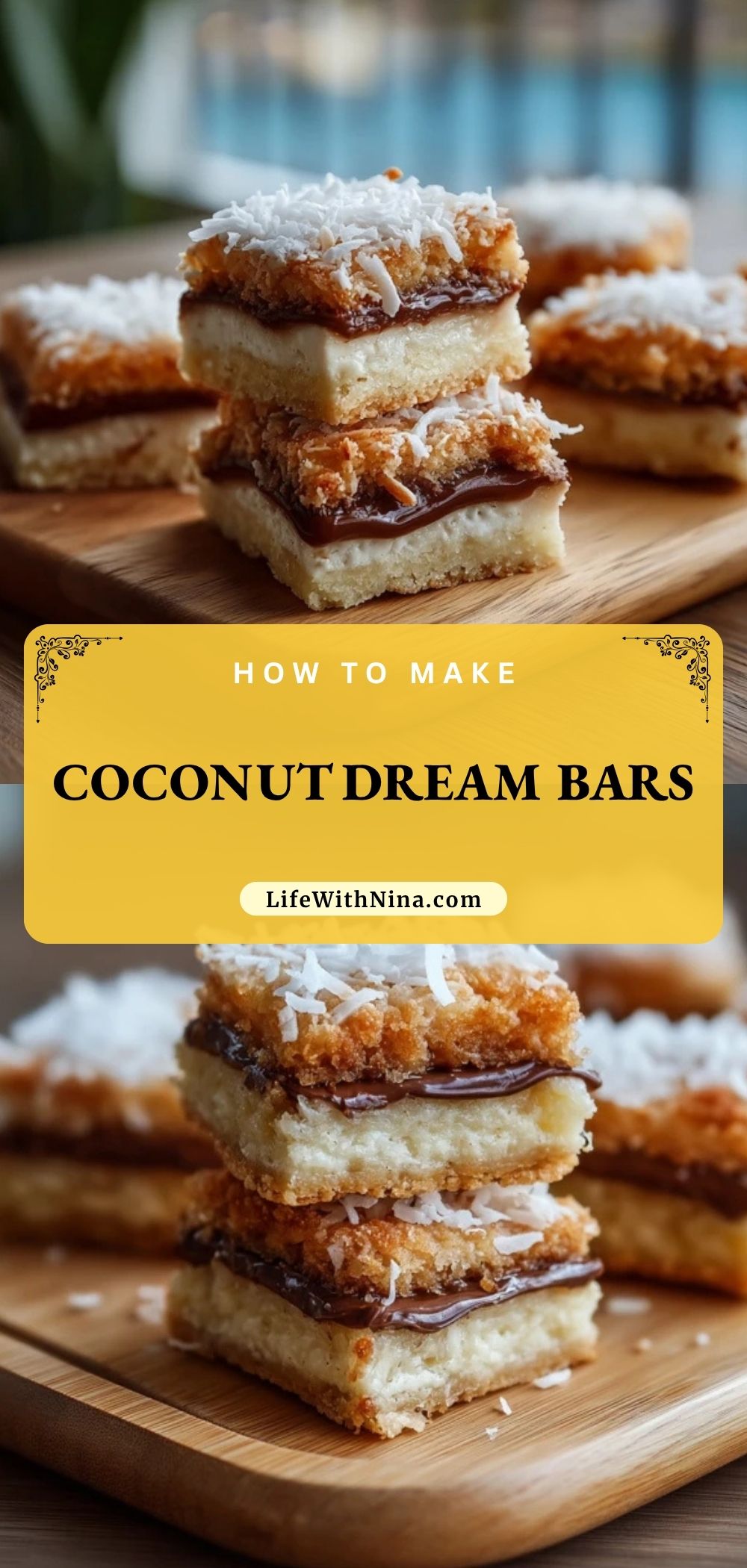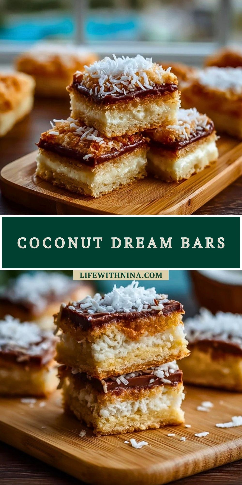 Keywords: coconut dream bars, easy dessert recipe, dessert bars, coconut bars, cheesecake bars, chocolate coconut dessert, party desserts, holiday baking, sweet snack ideas, food ideas