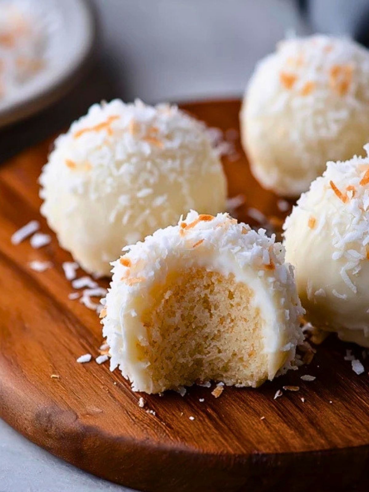 While the coating is still soft, roll each bite in sweetened shredded coconut so the outside is fully covered. This creates the snowy finish that makes these bites so pretty.