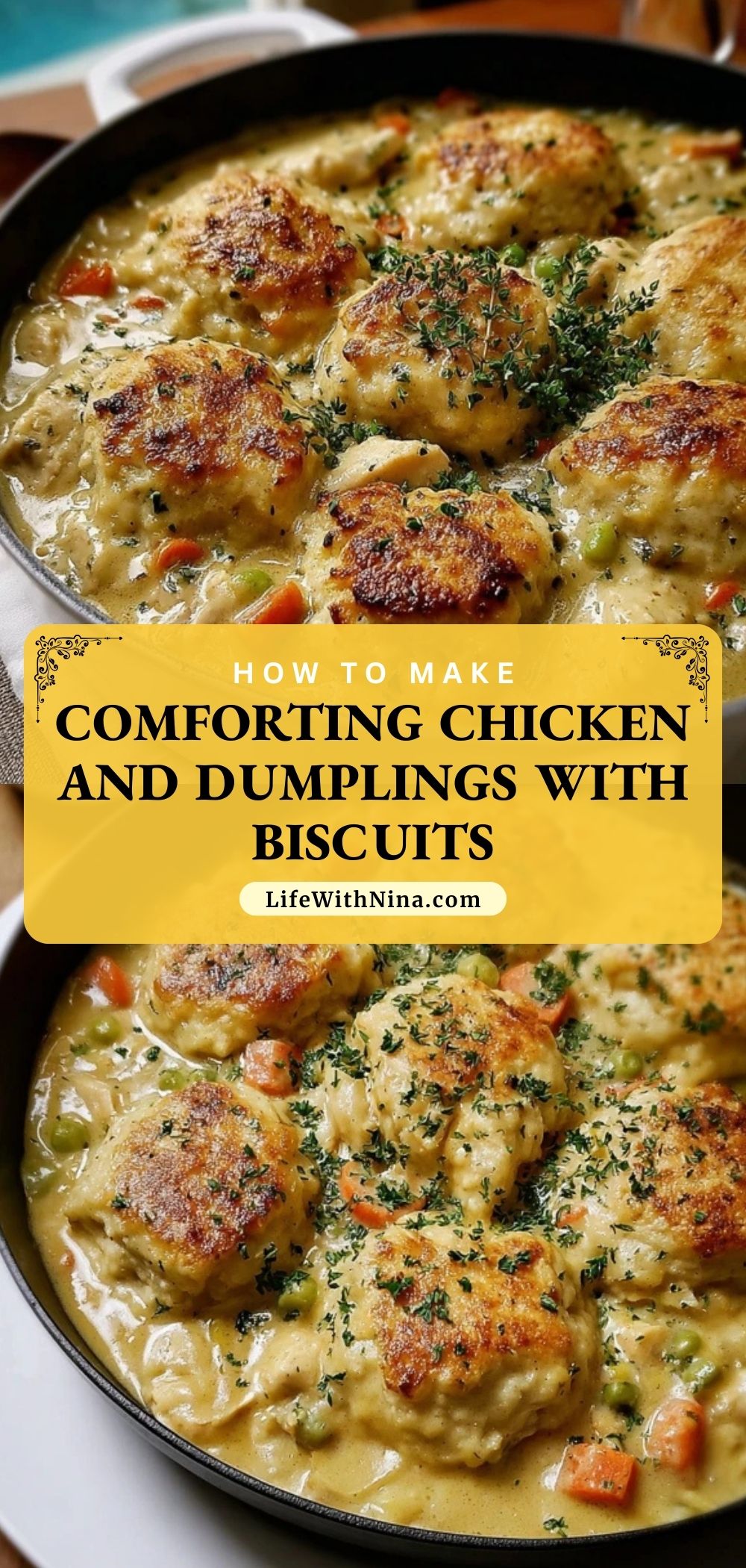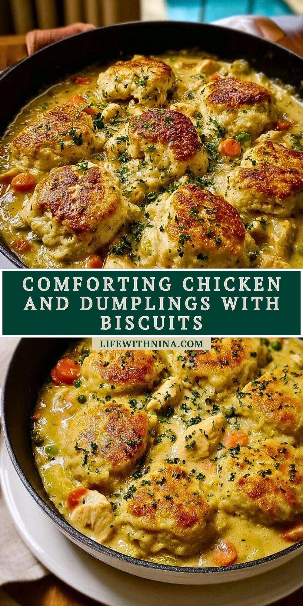 Keywords: chicken and dumplings, biscuit stew, creamy chicken dinner