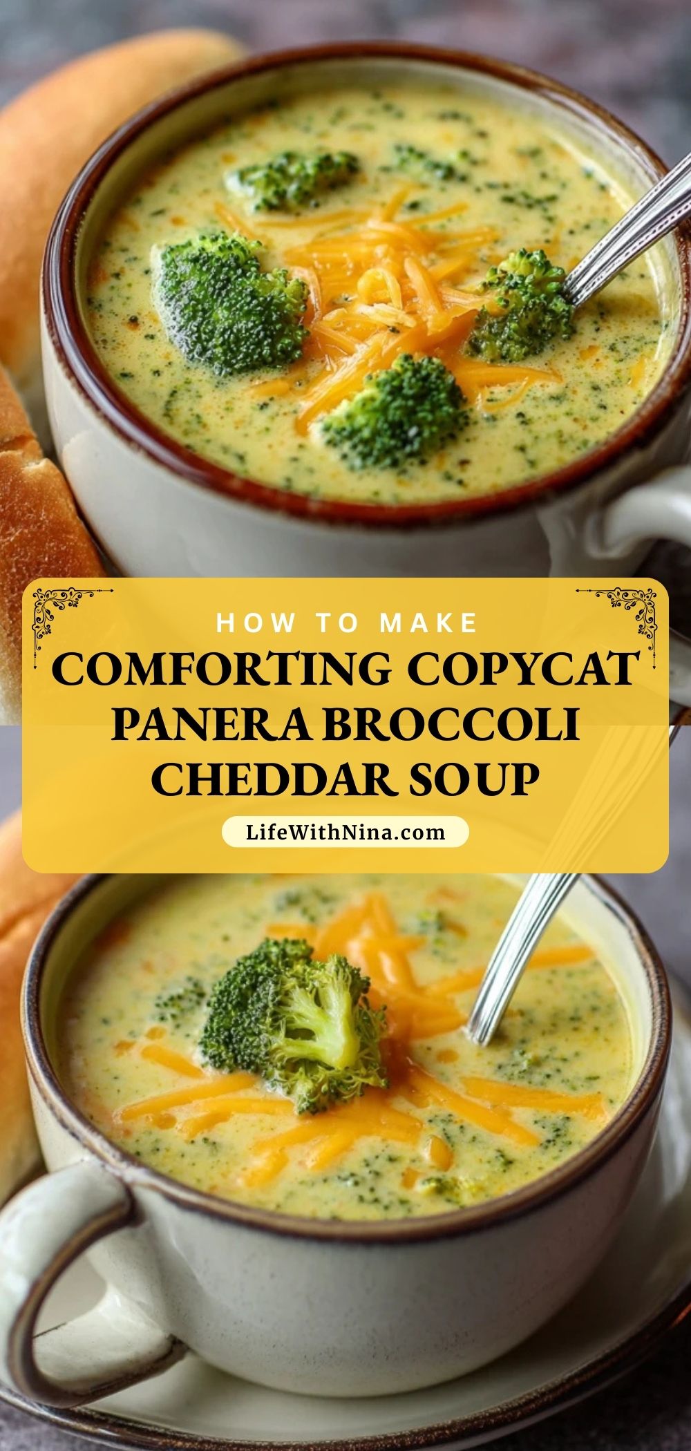 Keywords: broccoli cheddar soup, copycat Panera recipe, comfort food, easy soup recipe, fall dinner ideas