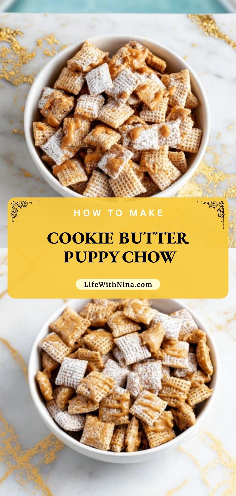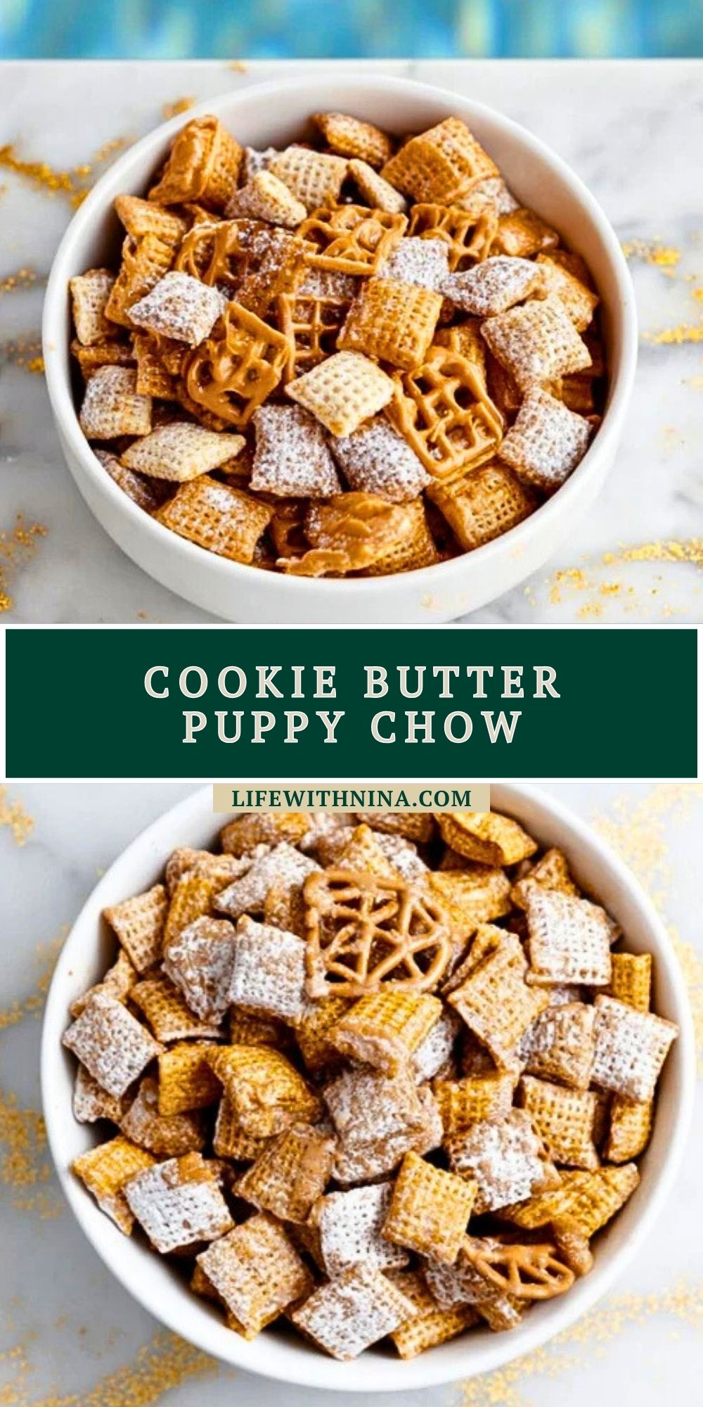 Keywords: puppy chow, muddy buddies, cookie butter, no-bake dessert