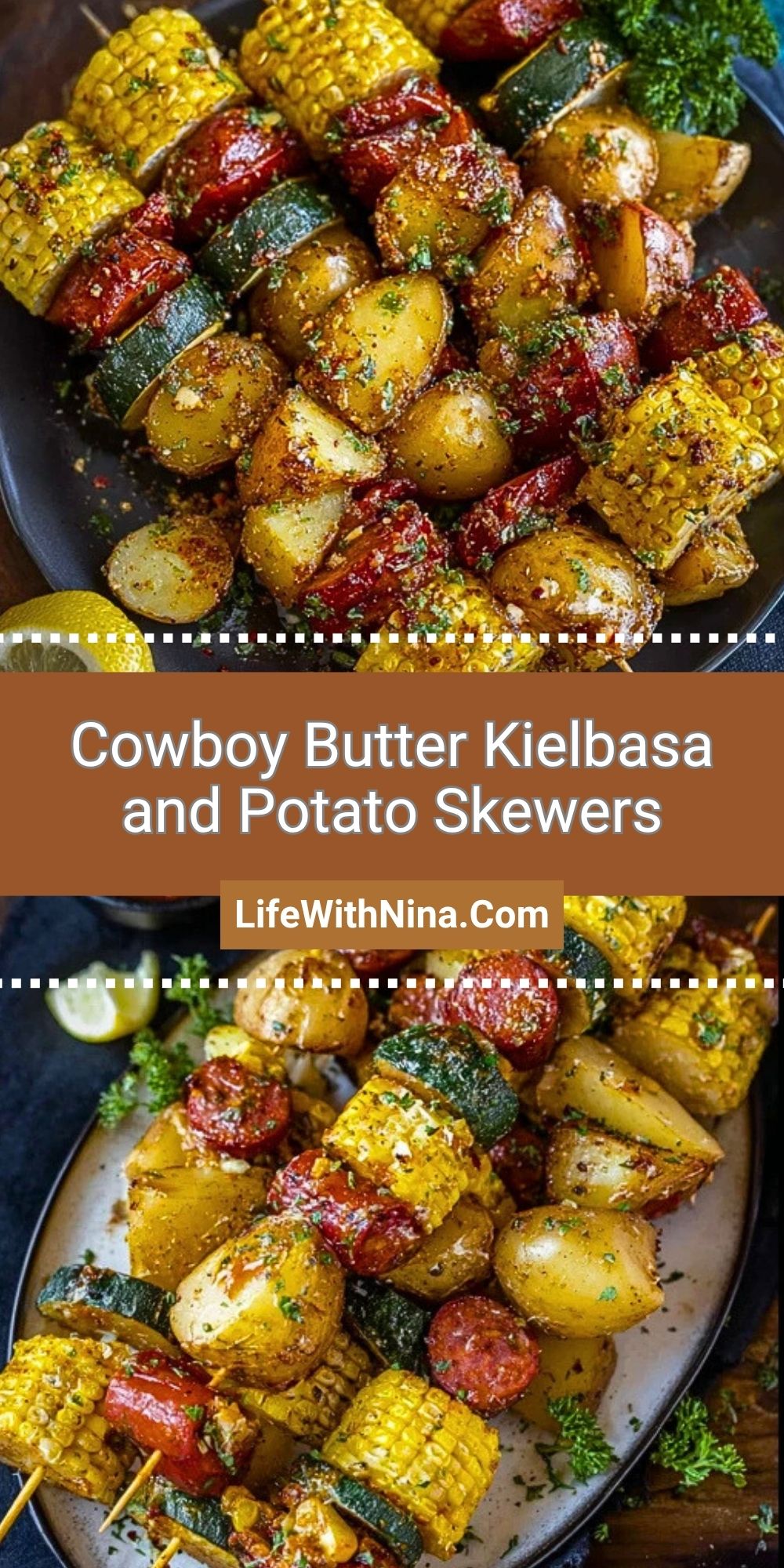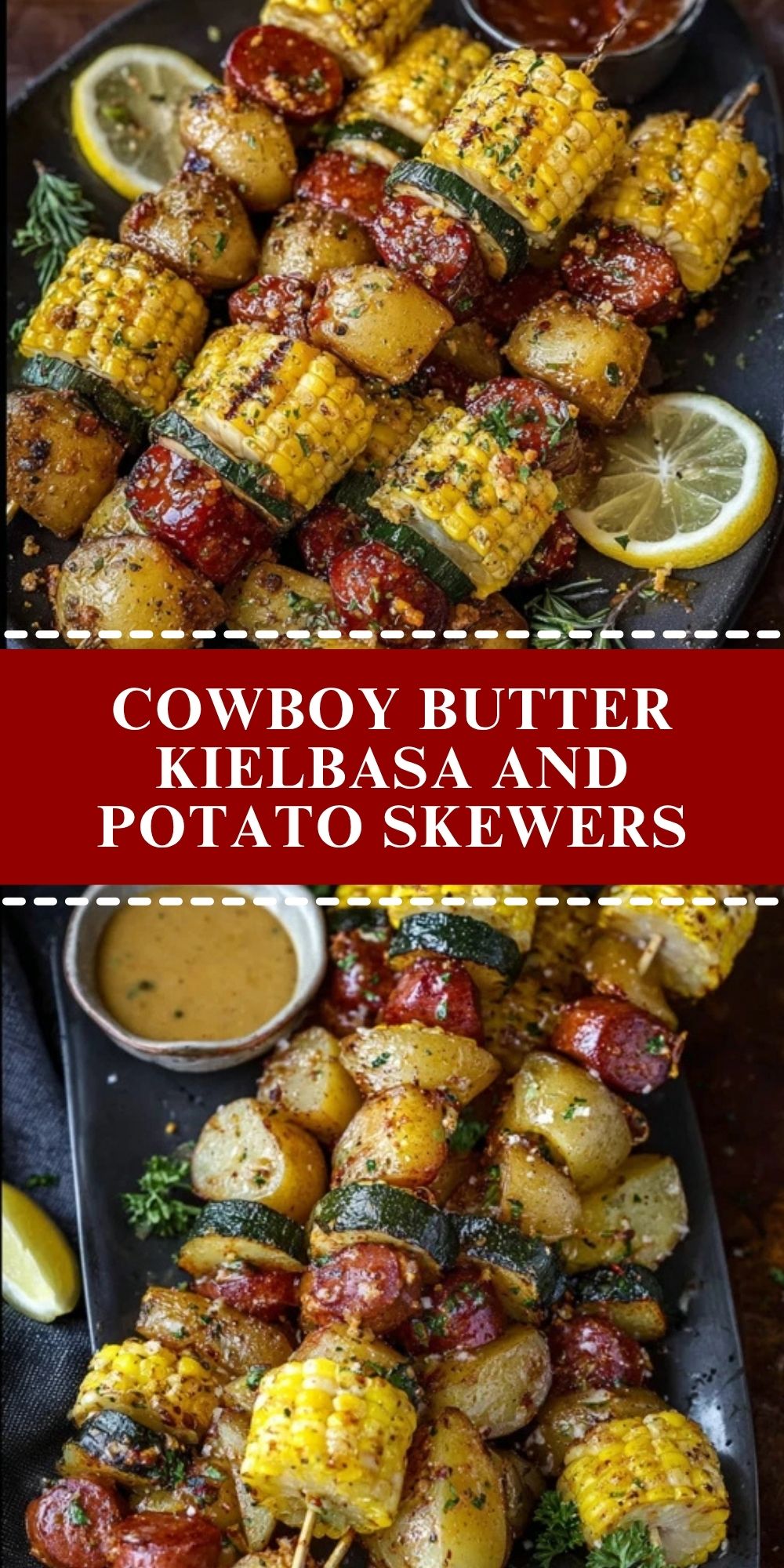 Keywords: cowboy butter, kielbasa skewers, summer grilling, easy BBQ dinner