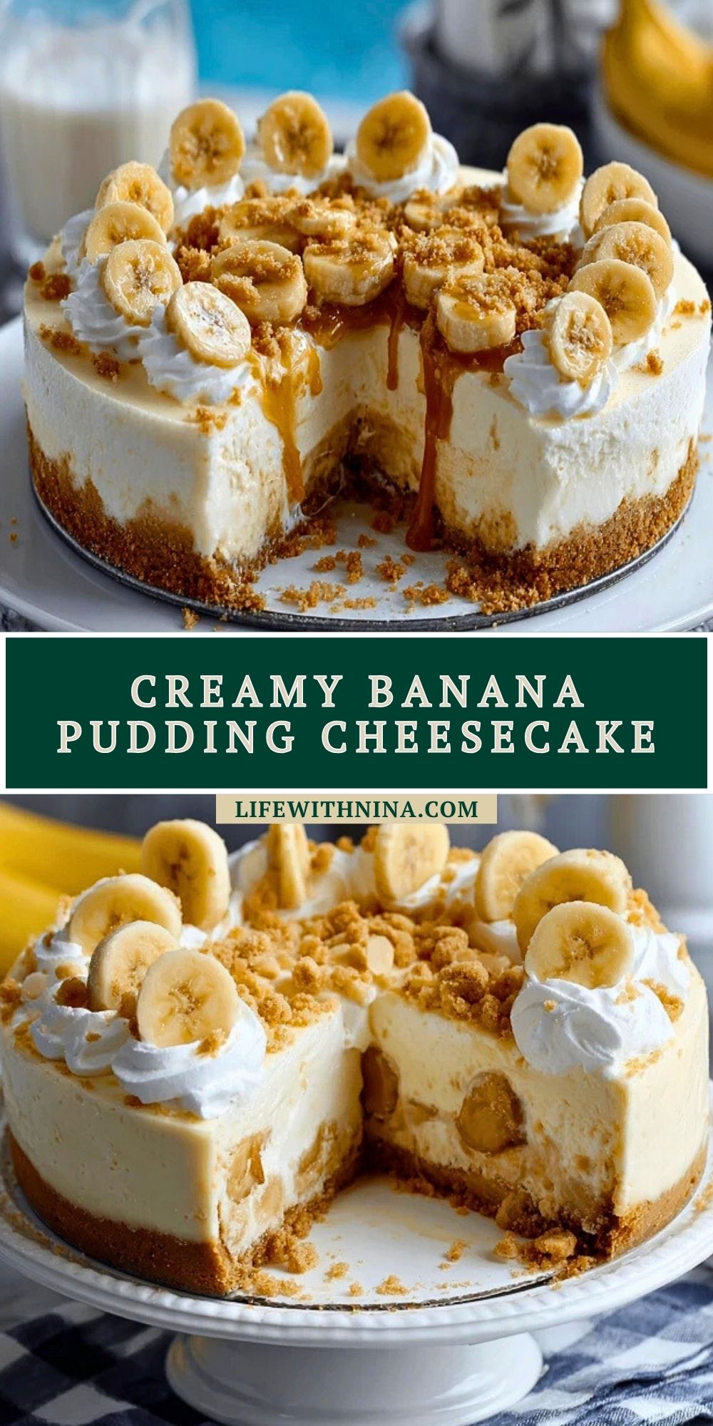 Creamy Banana Pudding Cheesecake is a no-bake dessert that blends rich cheesecake, classic banana pudding, and a buttery cookie crust. With fresh bananas, vanilla pudding, and whipped topping, every bite is smooth, fruity, and perfectly sweet. This crowd-pleaser is layered with nostalgia and topped with a dreamy garnish of crushed cookies and caramel drizzle.