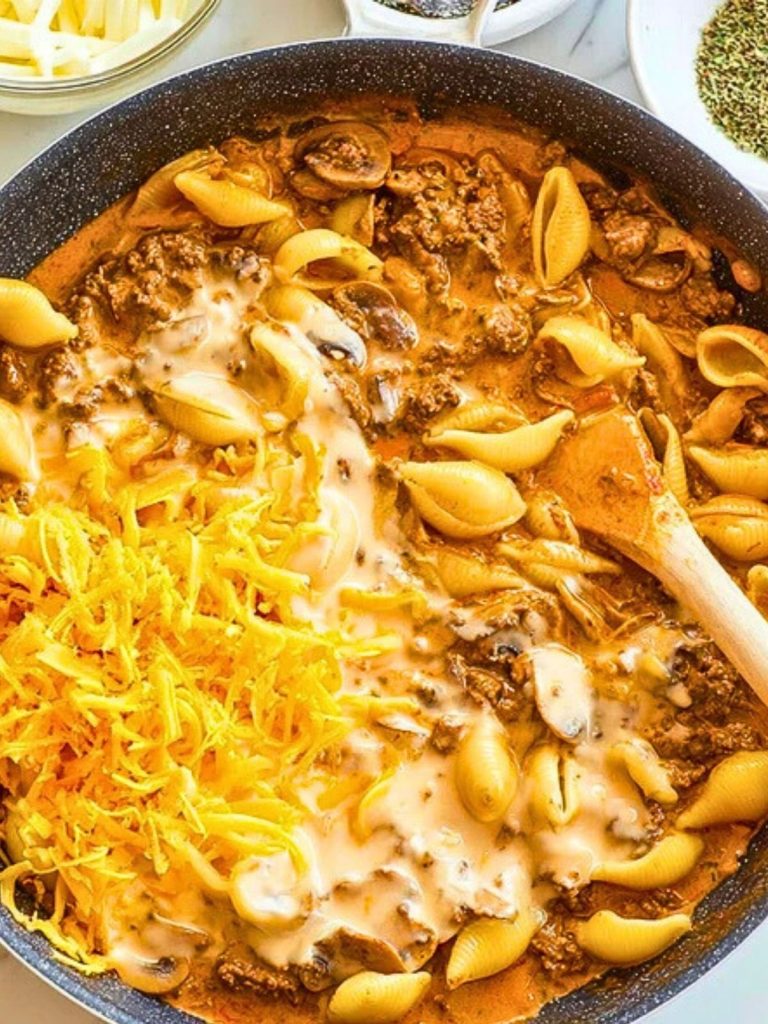 When comfort food is the craving, Creamy Beef and Shells hits every note. This easy, one-skillet dinner combines tender pasta shells, seasoned ground beef, savory mushrooms, and rich, velvety cheese sauce to create the ultimate weeknight meal. It’s nostalgic, satisfying, and oh-so-simple to make. Perfect for families, busy evenings, or when you’re simply in the mood for something hearty and indulgent.