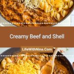 Keywords: creamy beef shells, skillet pasta, comfort food, easy dinner, ground beef recipes