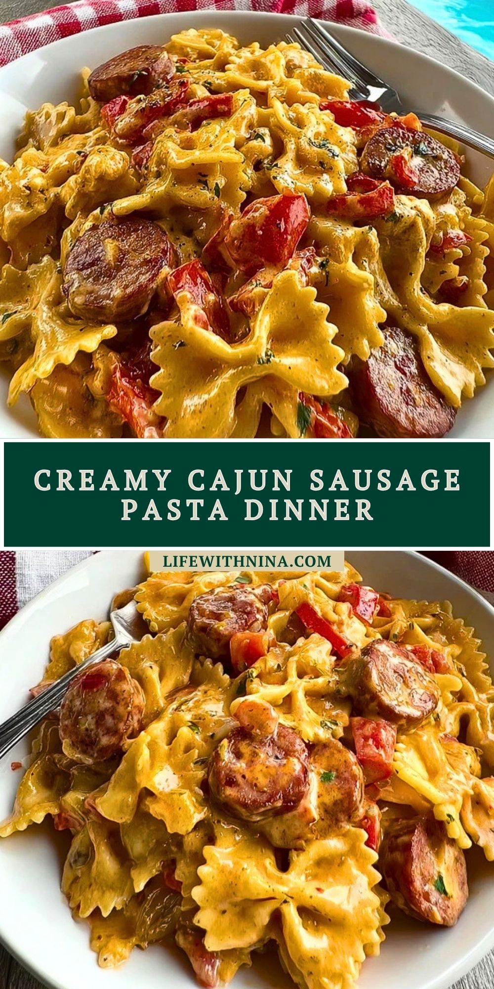 Keywords: creamy pasta, easy dinner, sausage pasta, cajun pasta, quick meal