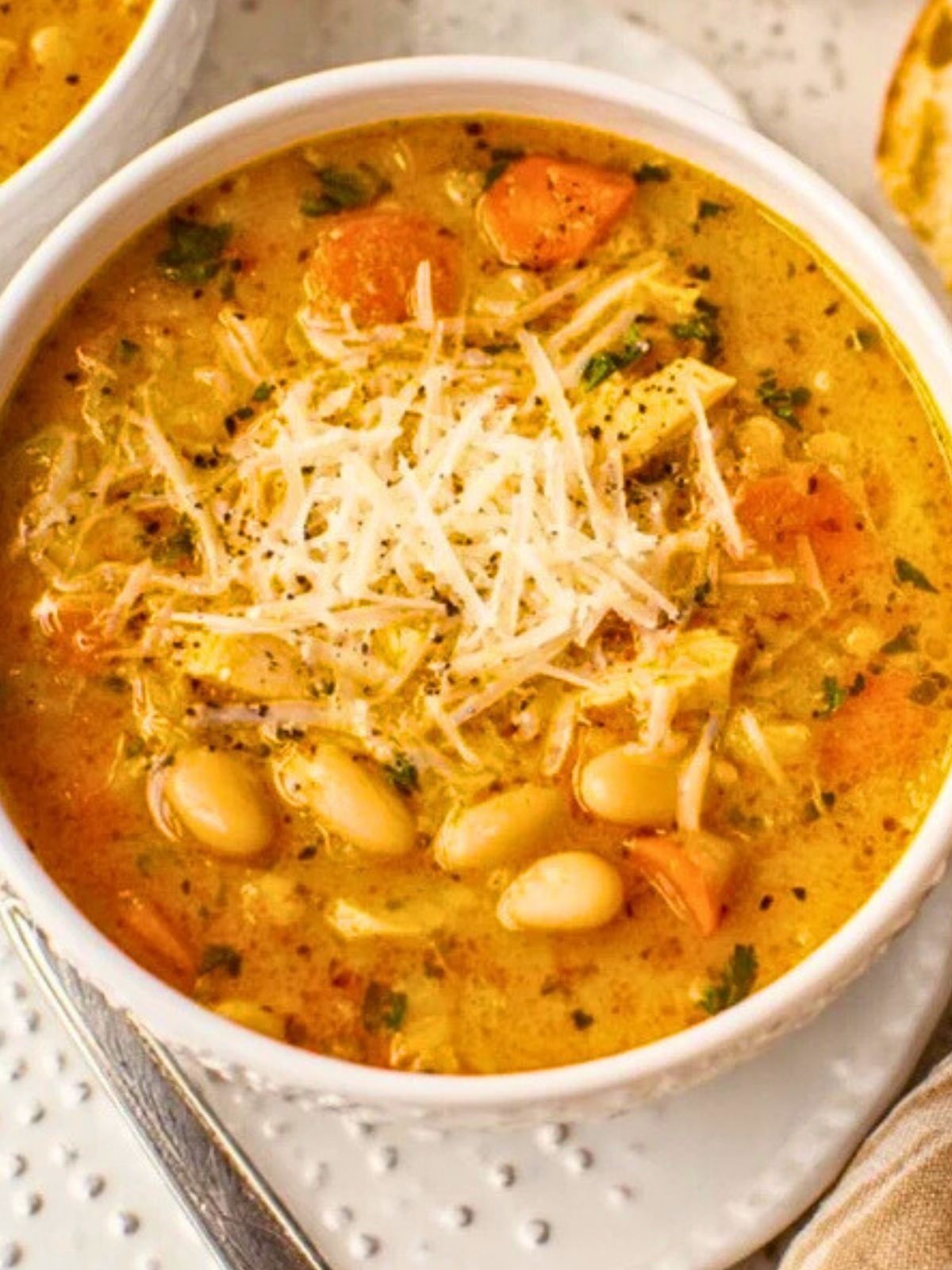 If you love this Creamy Chicken White Bean Soup, you’ll probably enjoy these other comforting bowls: