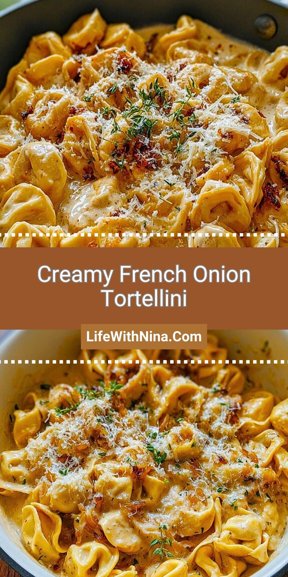 Keywords: Creamy tortellini, French onion pasta, caramelized onion, easy dinner, cheesy skillet