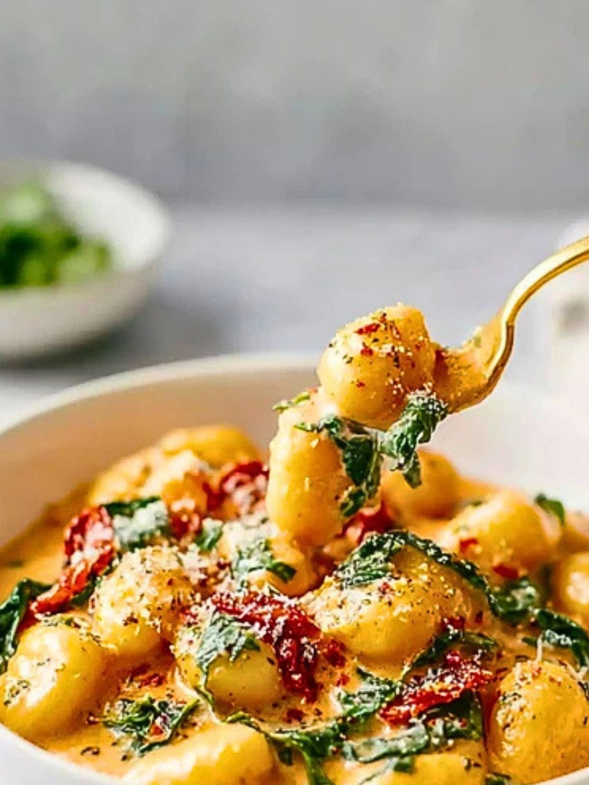 What makes this dish stand out is the contrast of textures and flavors. The gnocchi stays soft and tender, while the sauce brings richness from cream, depth from garlic and Parmesan, and a pop of bold flavor from sun-dried tomatoes. A handful of spinach adds freshness and color, making the whole skillet feel balanced instead of too heavy.