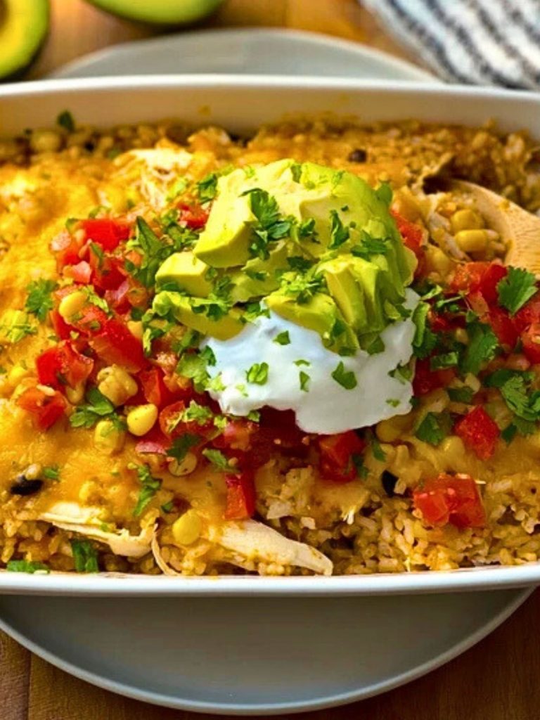Keywords: creamy chicken casserole, Mexican rice bake, taco chicken bake