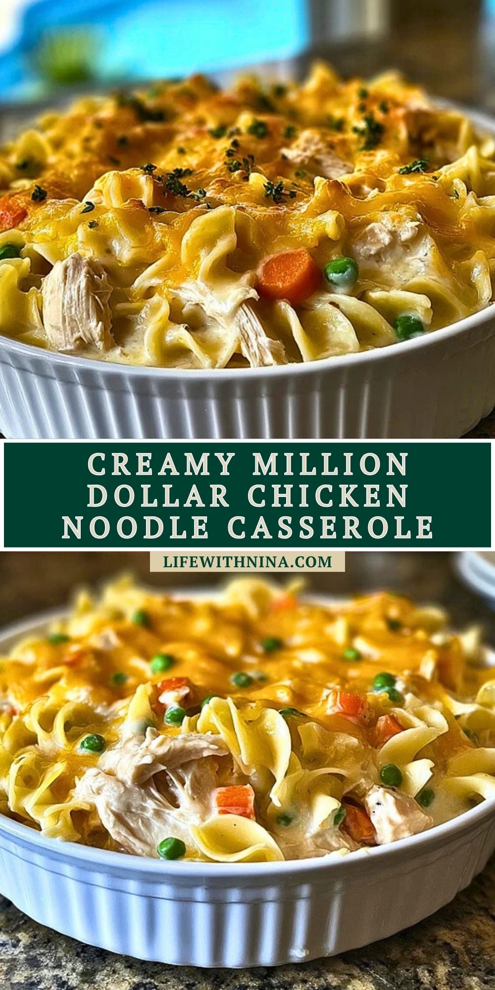 This Creamy Million Dollar Chicken Noodle Casserole brings together juicy chicken, tender egg noodles, and a velvety, cheesy sauce baked until golden and bubbly. It’s the kind of dish that feels like a warm hug—perfect for busy weeknights, potlucks, or when you need a freezer-friendly meal full of comfort and flavor.