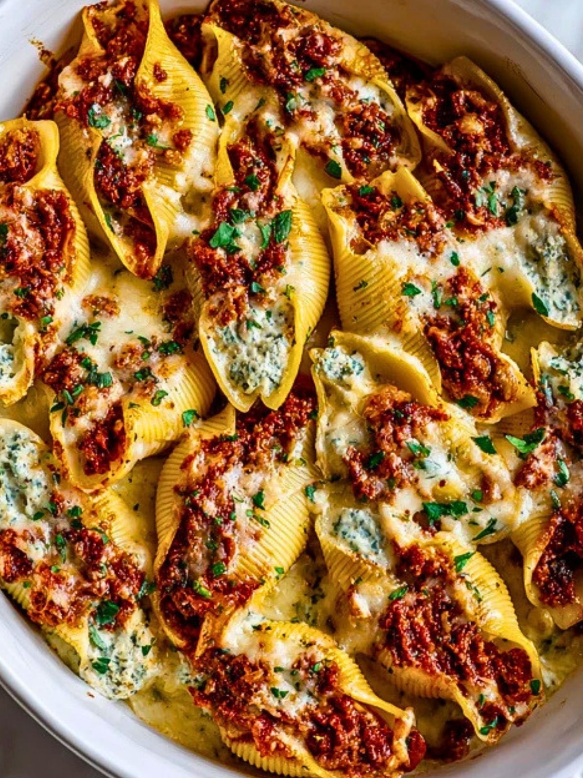 This dish is cozy, cheesy, and perfect for family dinners, meal prep, or a casual weekend gathering when you want something hearty and homemade. The creamy filling balances beautifully with the tangy depth of the sun-dried tomatoes, and once everything bakes together, you get bubbling, golden stuffed shells that are hard to resist.