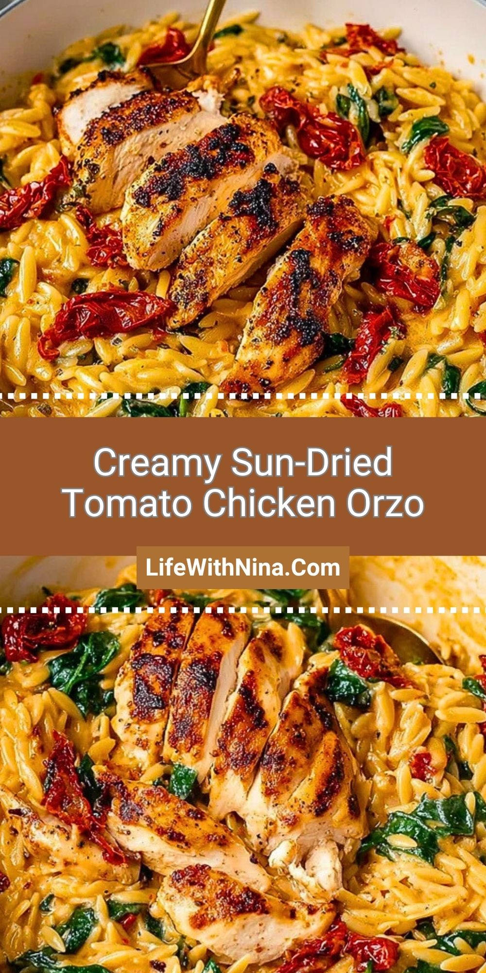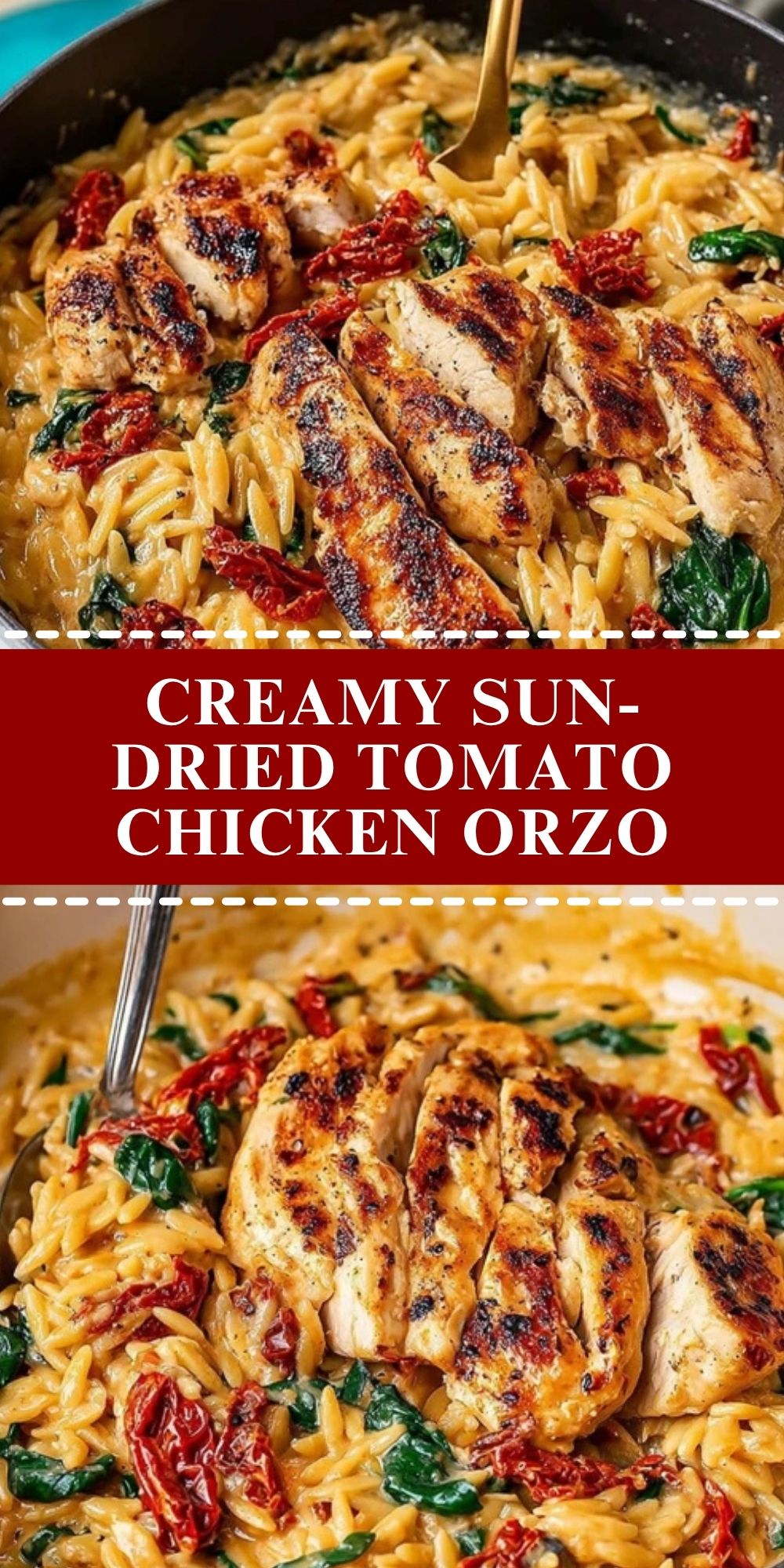 A cozy and creamy one-skillet dinner made with juicy seared chicken, orzo pasta, sun-dried tomatoes, and spinach in a Parmesan garlic cream sauce. It’s the perfect quick meal for weeknights or meal prep with big, bold flavor in every bite.