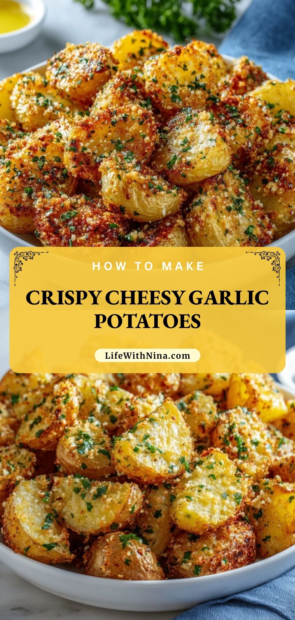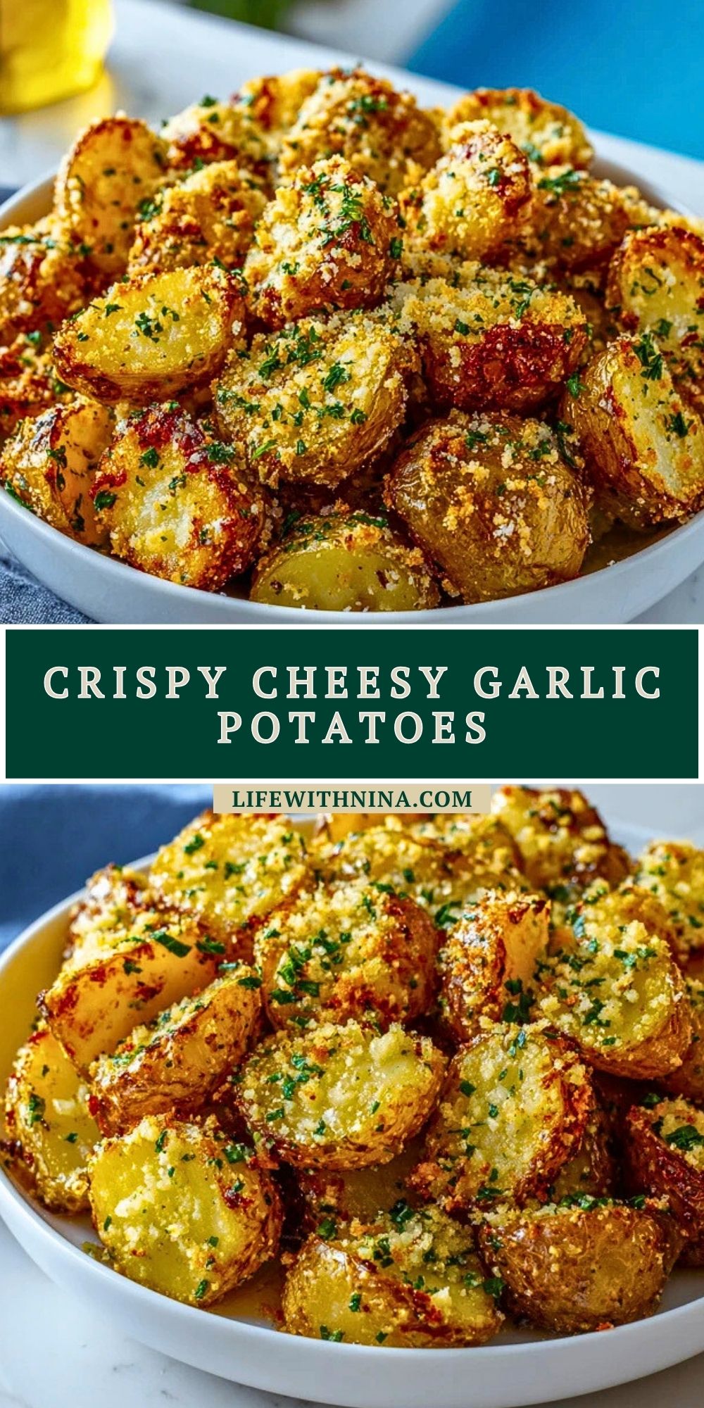 These Crispy Cheesy Garlic Potatoes are everything a comforting side dish should be—golden, crispy, loaded with garlic, and crowned with a salty Parmesan crunch. They’re easy to prepare and always a crowd-pleaser whether you’re serving them with steak, brunch, or a weeknight meal.