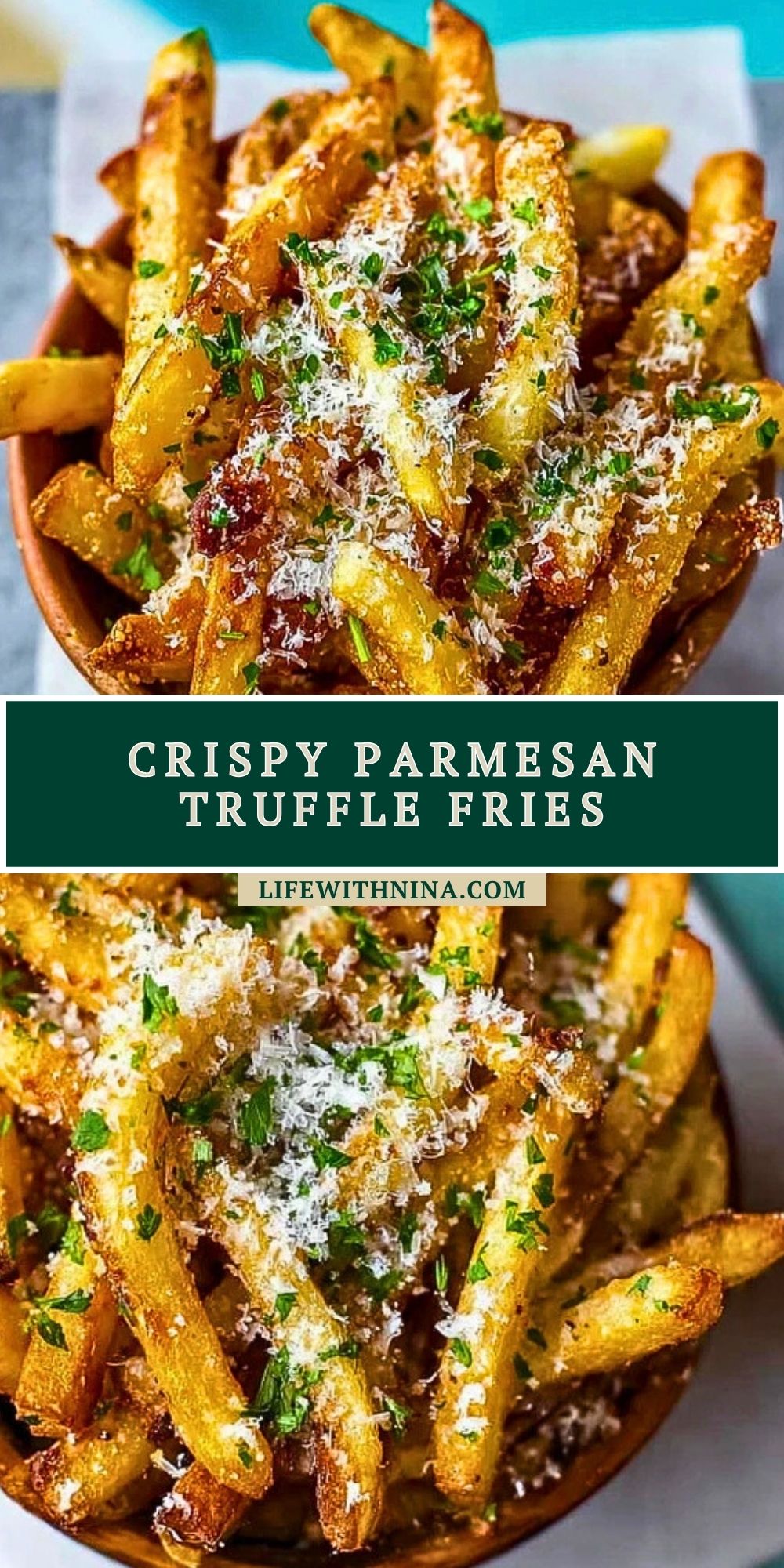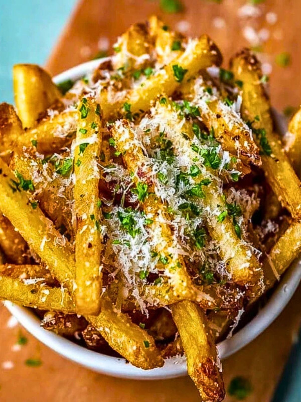 Immediately sprinkle the fries with freshly grated Parmesan and chopped parsley. Serve hot with your favorite dip or enjoy them as-is!